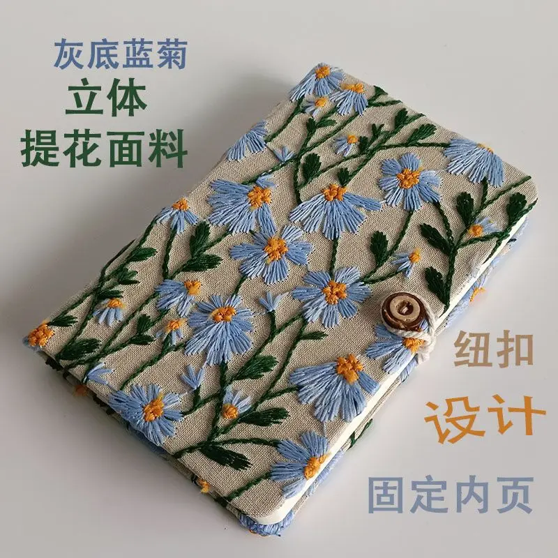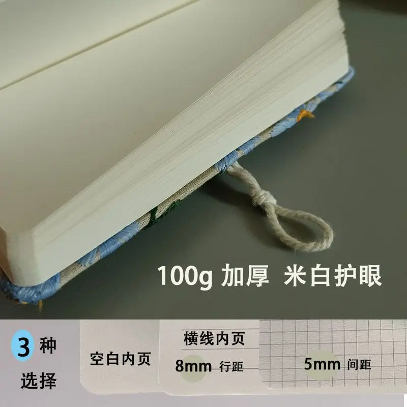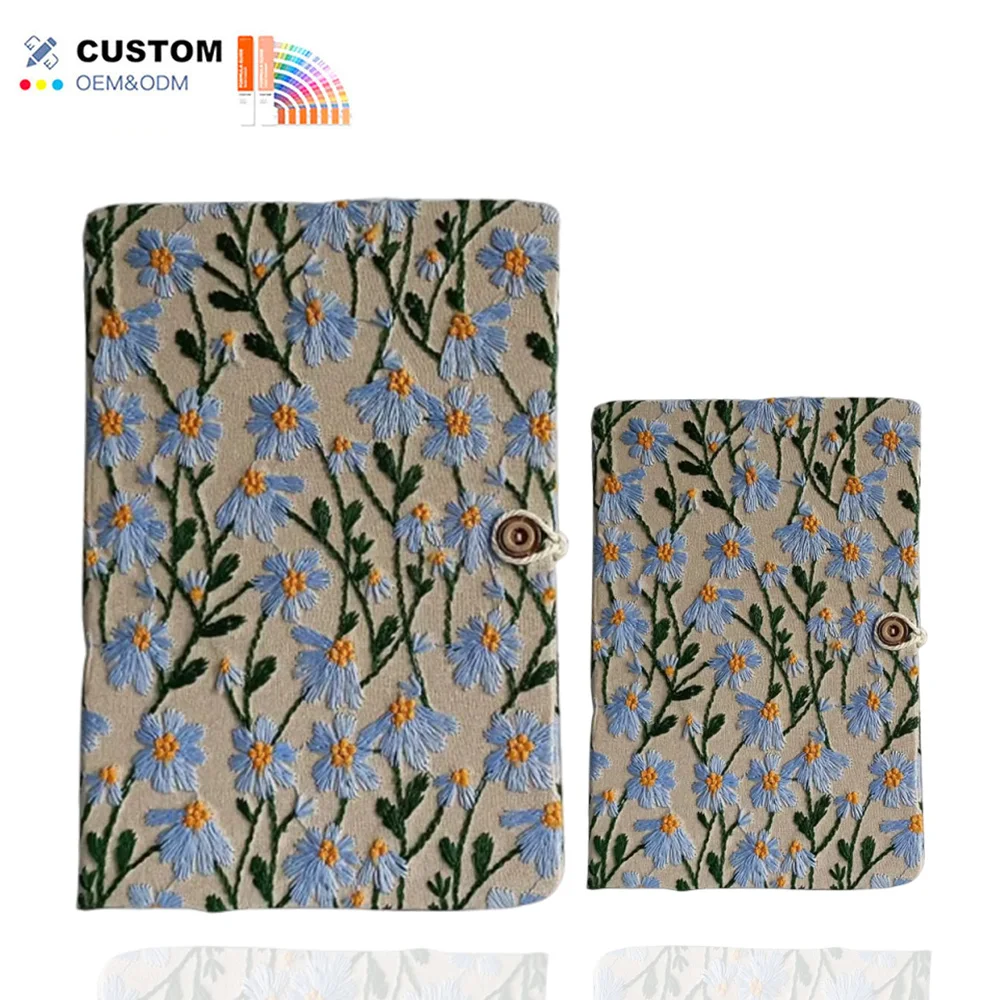 Customized Logo A5 Fabric Embroidery Notepad 100 Sheets Mini Size PP Cover Horizontal Lines Thread Sewing Student Work Record