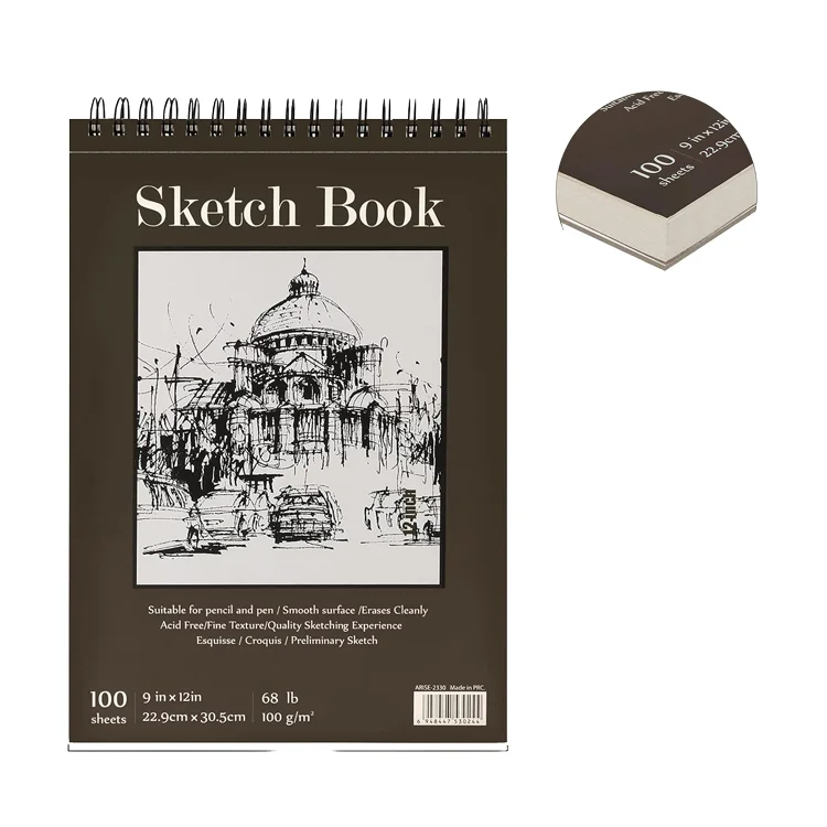 Custom Sketchbook 200 Page Hardcover Spiral Watercolor Paper Art Students Pencil Drawing Supplies for Professional Artists