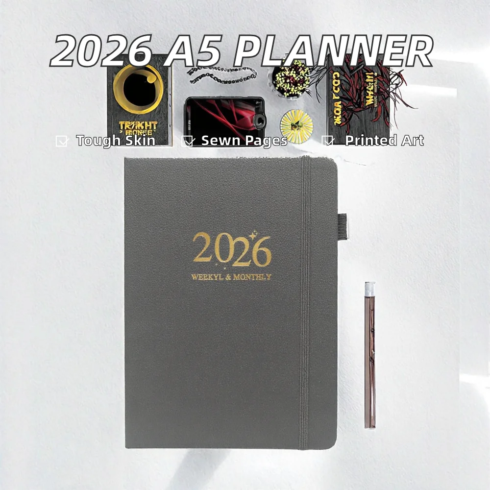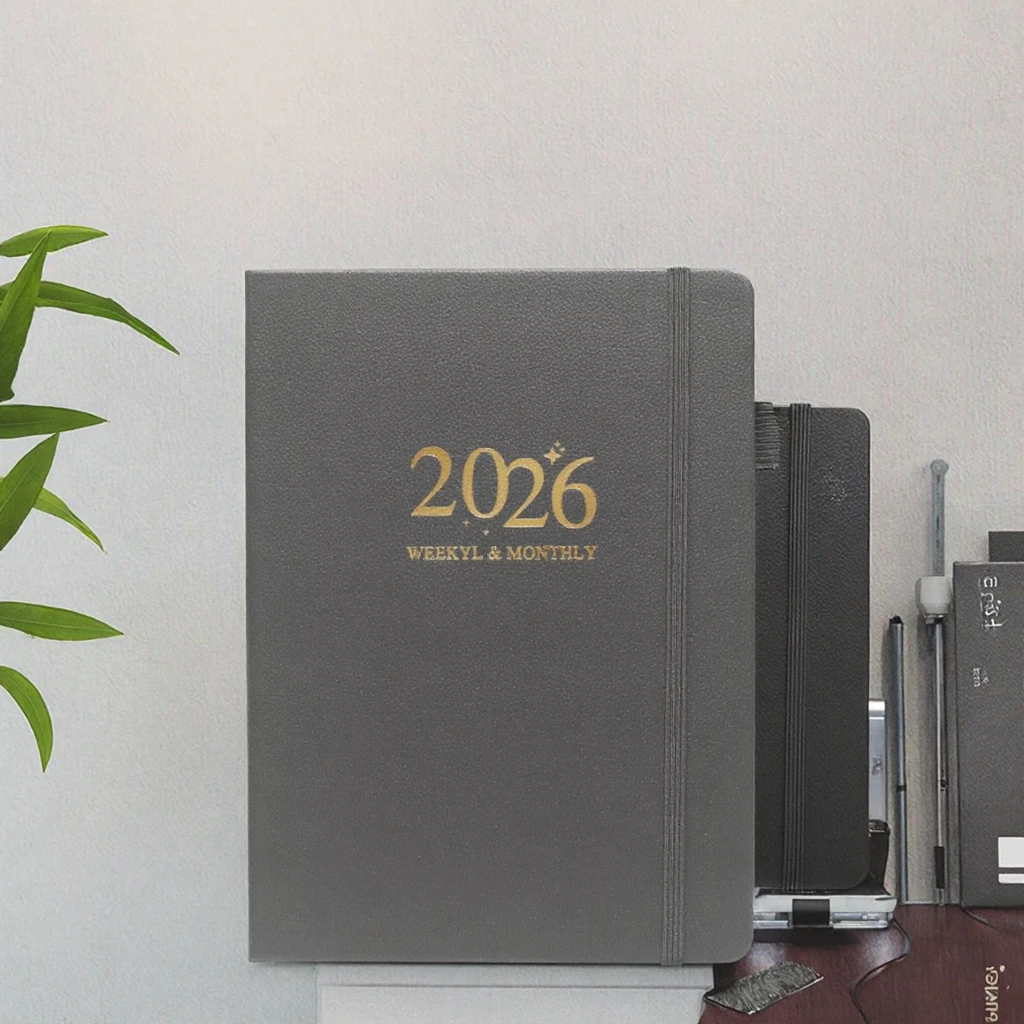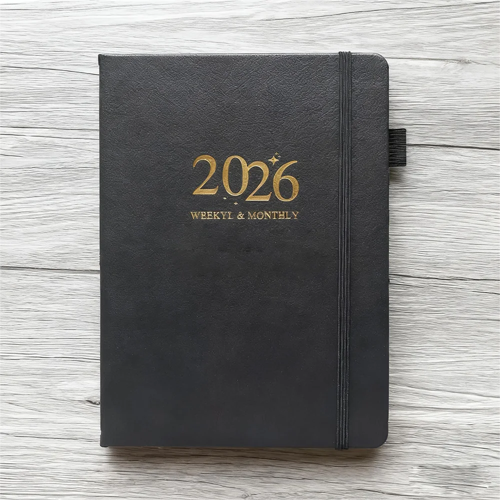 Stylish Design Thread Sewing Binding Printed Leather Calendar A3 Size 2026 A5 Weekly Notebook New Plan Book Strap