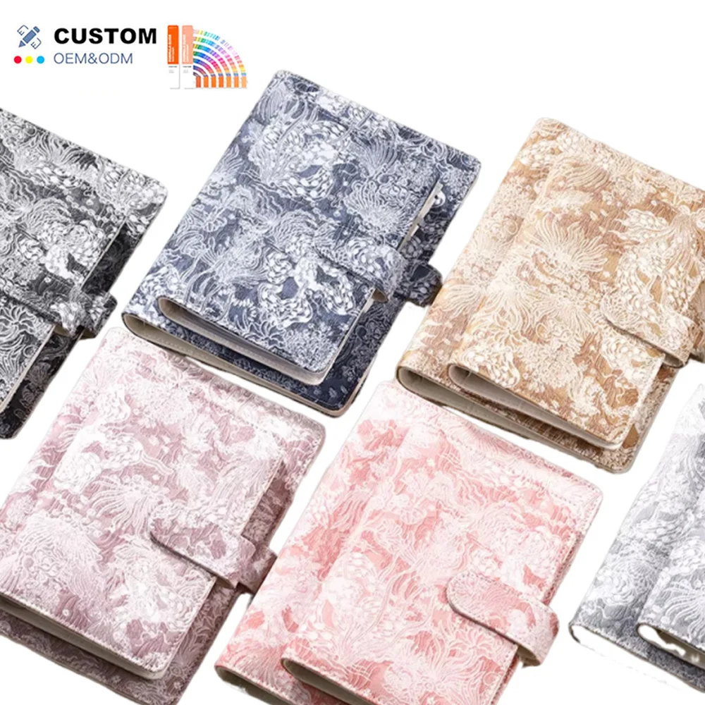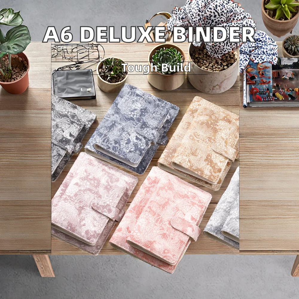 Eco Friendly Deluxe A6 Leather Bound Budget Planner Notebook Elegant 6 Ring Binder Loose Leaf Spiral Binding Customizable