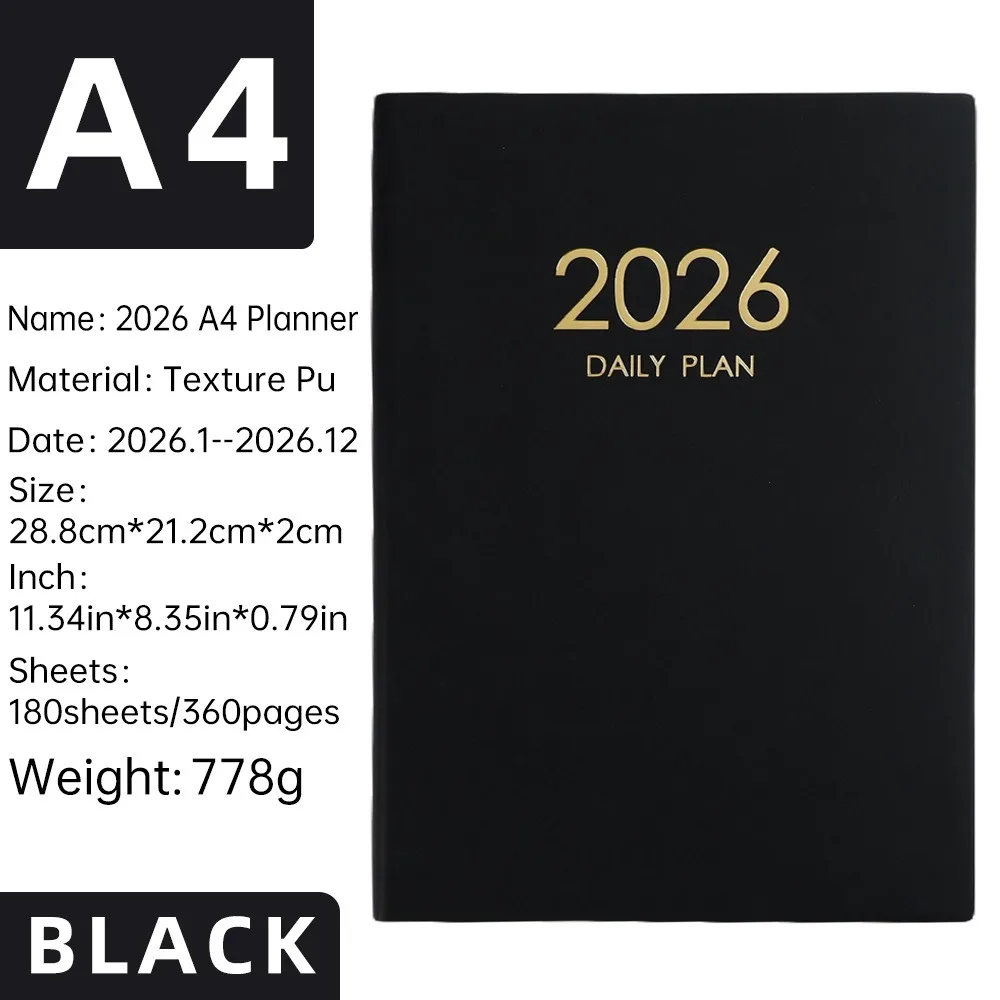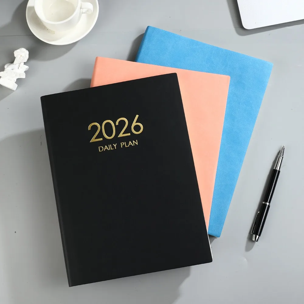 2026 Customizable PU Leather A4 Daily Planner Notebook Thick Pages for Office Use and Gift Ideas