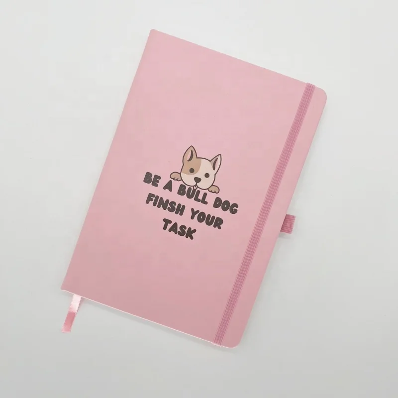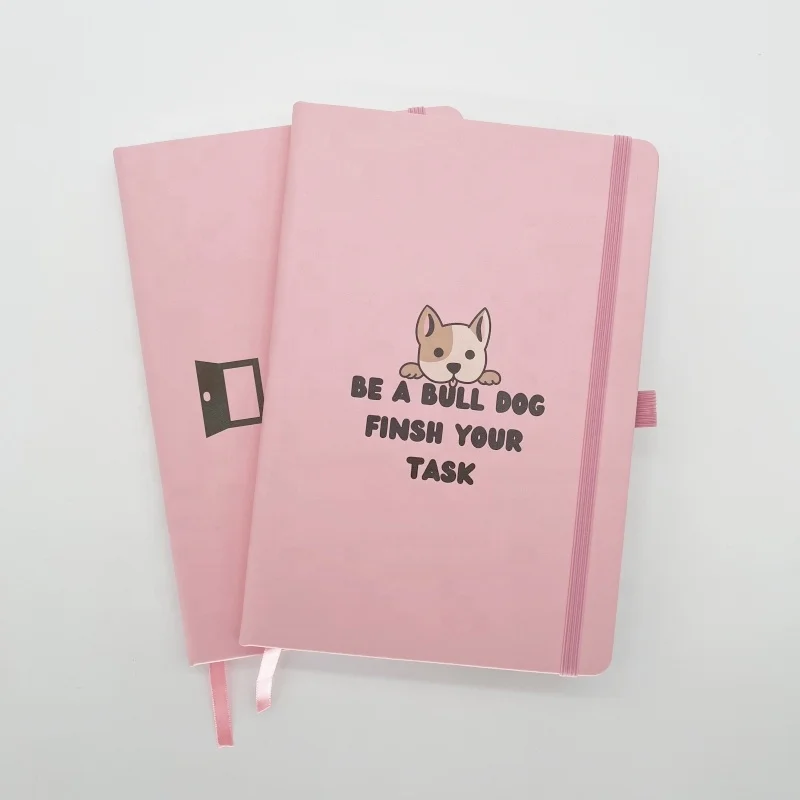 Customized Cover A5 PU Leather Business Gift Diary Logo Printed Pink Hardcover Journal Notebook with Elastic Strap