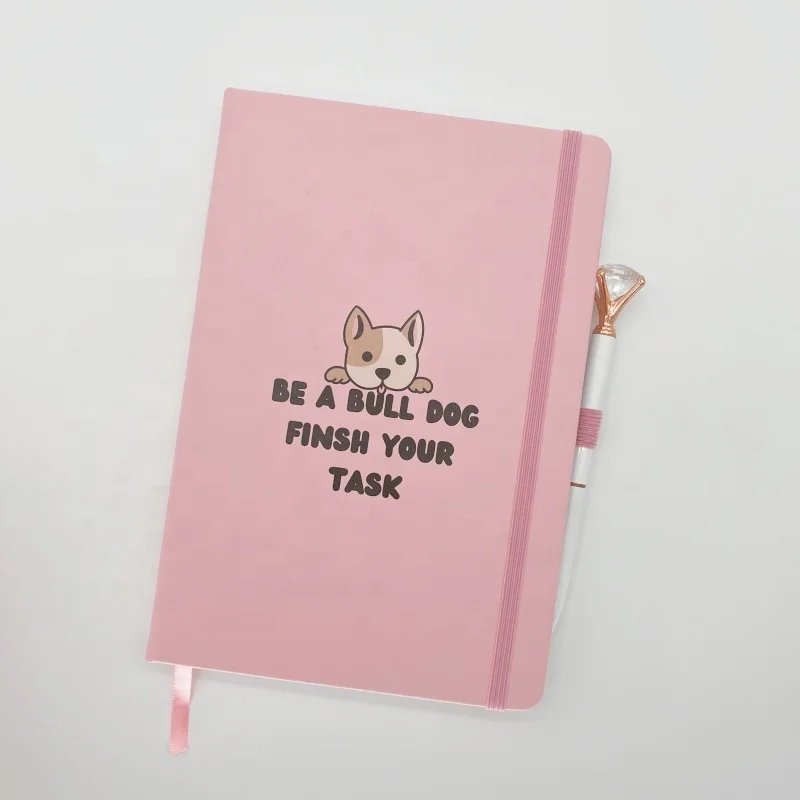 Custom A5 Hardcover Pink PU Leather Journal Diary With Pen Logo Printed Dotted Grid Bullets Journals Notebook
