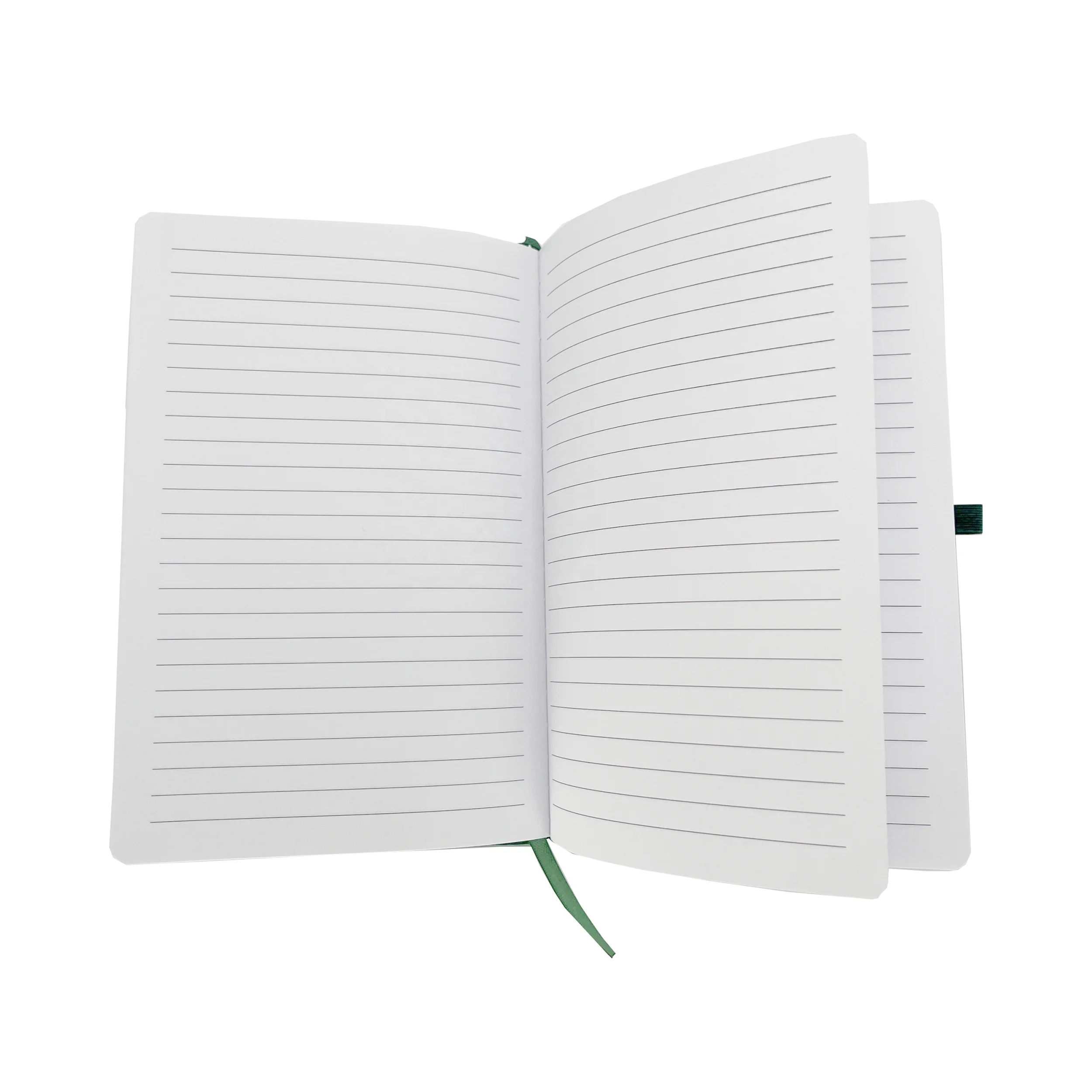 Green PU Leather A5 Hardcover Journal Notebook with Sewing Binding Promotional Ruled Lined Notebook for Office Use