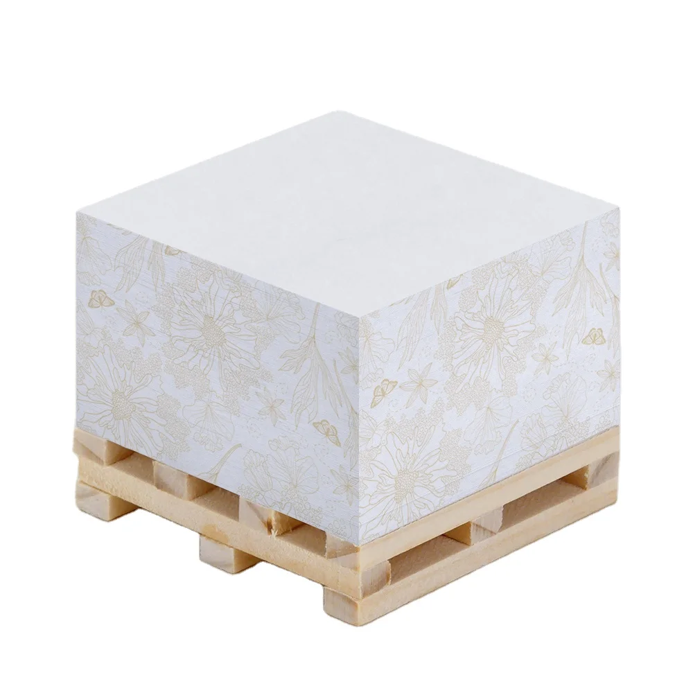 Custom Designed Square Memo Note Pad Block 4 Sides Self-Adhesive Paper Sticky Notes OEM Wooden Pallet Packaging