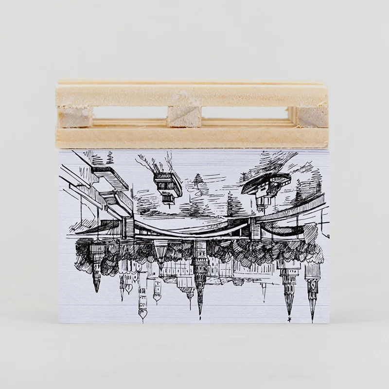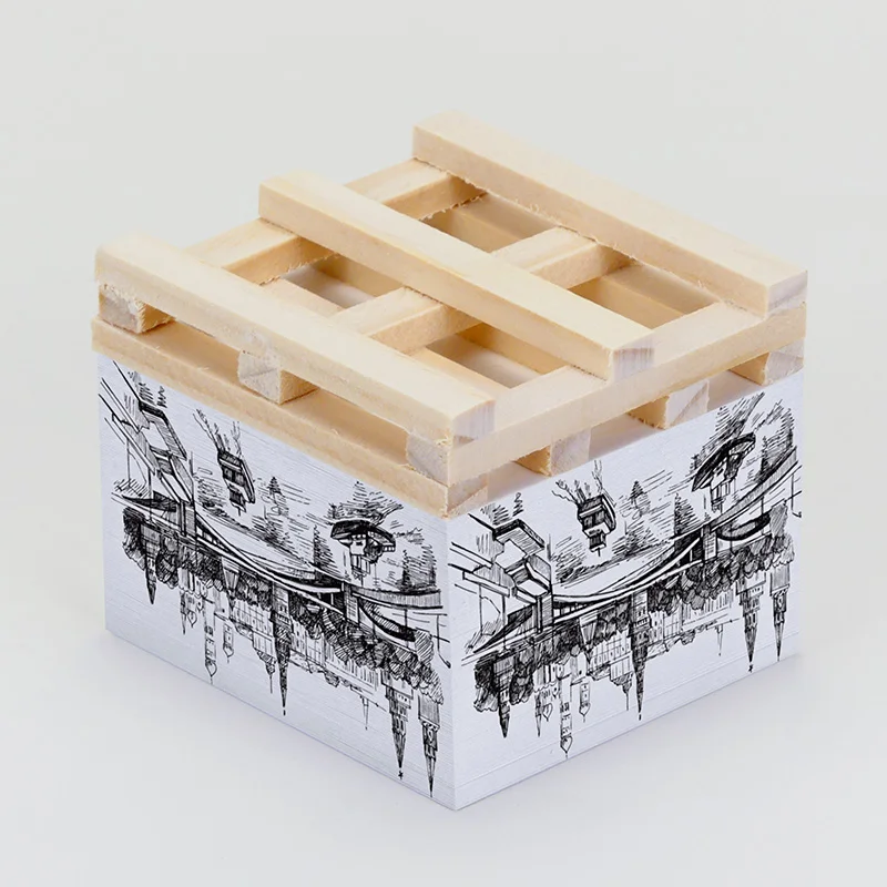 Wholesale Custom Logo 8.5*8.5cm Self Adhesive Sticky Notes Memo Cube Sticky Note Pad With Wooden Pallet