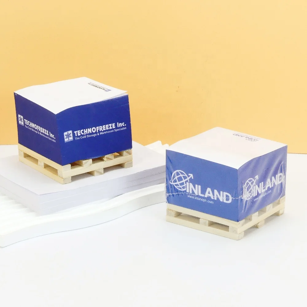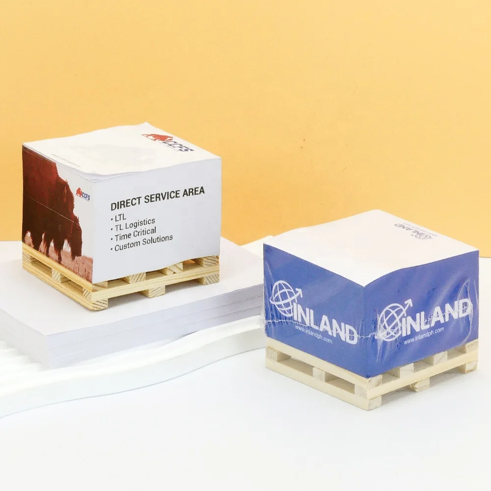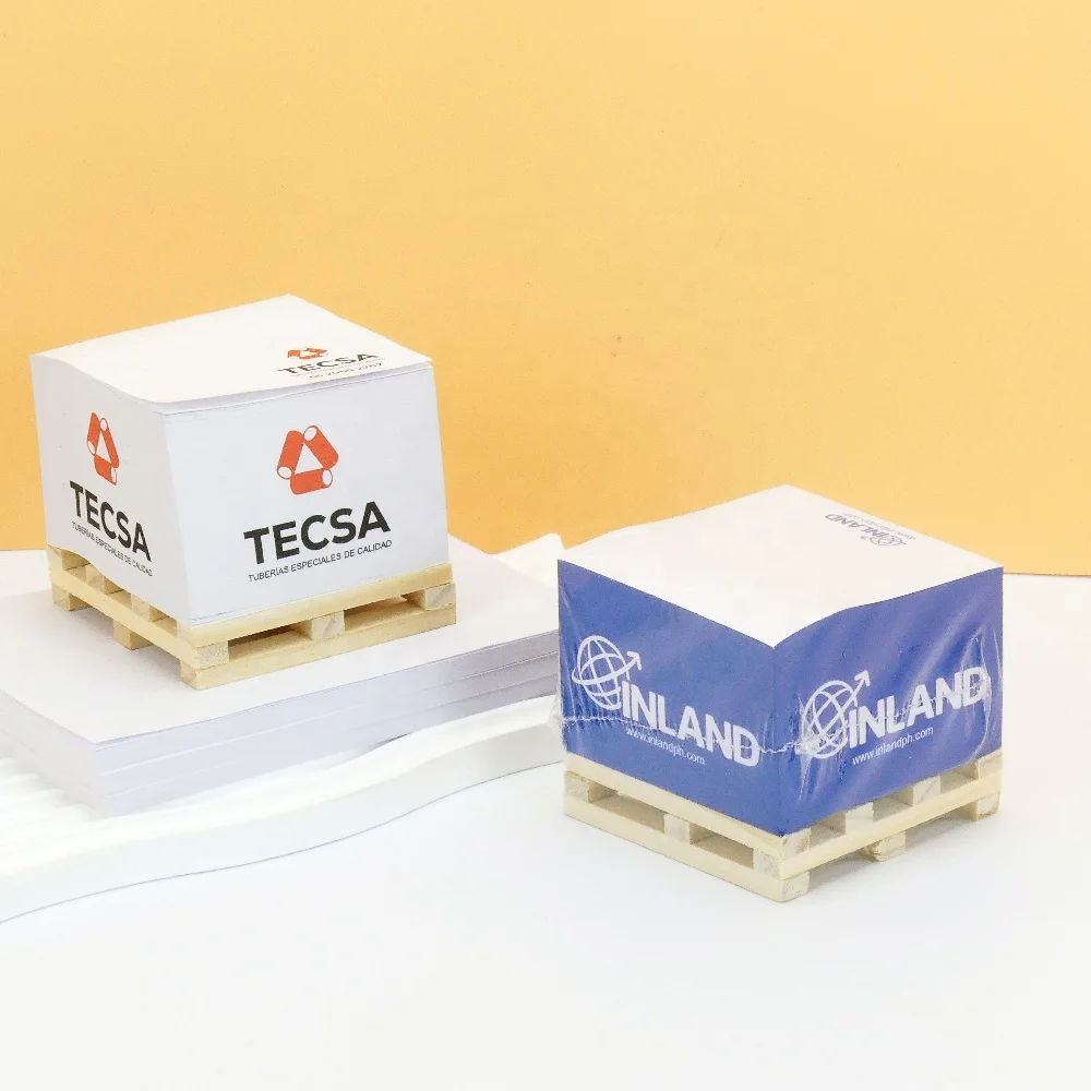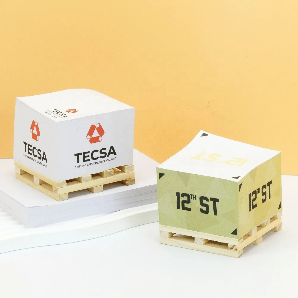Customized Promotional 3x3 in Wooden Pallet Sticky Notes Cube Paper Adhesive Memo Pads Blocks Square Cubes