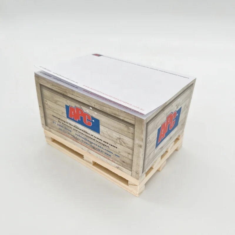 Custom Printed Office Gift Adhesive Notes Pads Cube Blocks Wood Pallet Sticky Notes with Company Logo