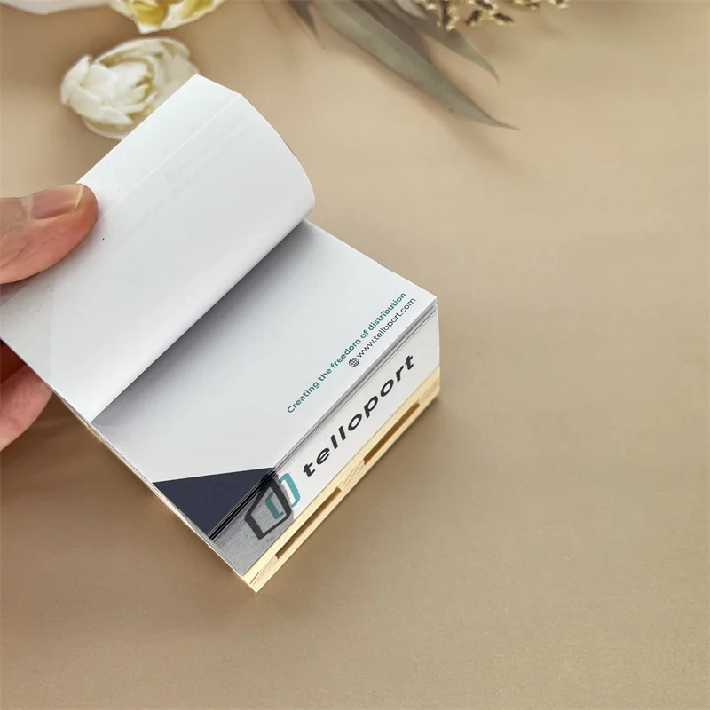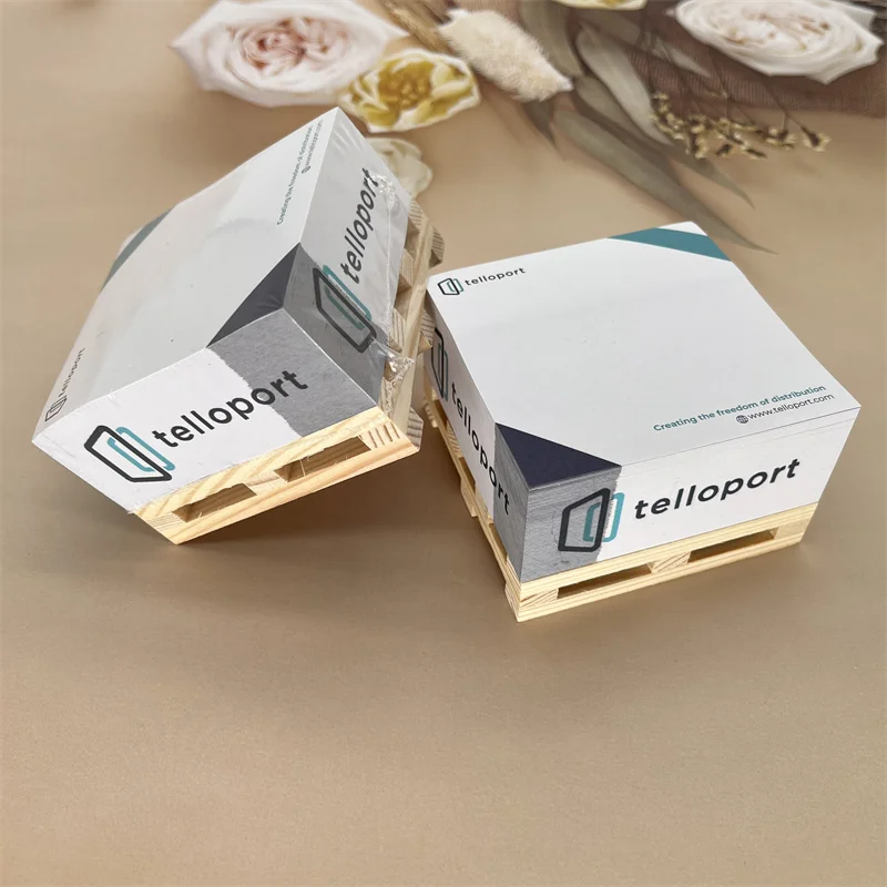 Wholesale Cube Self-Adhesive Sticky Notes Pad CMYK Printing Feature-Rich Paper with Wooden Pallet for Promotional Gifts