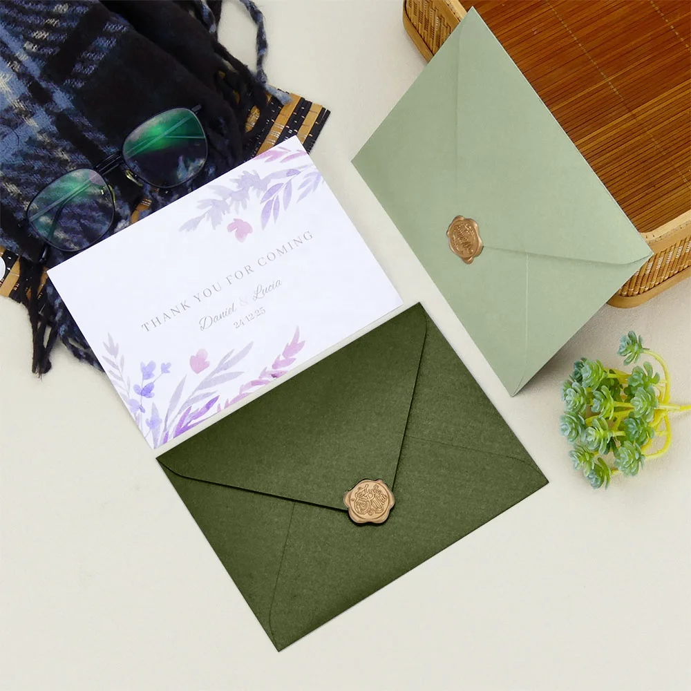 Best Wishes Custom Green Cardboard Recycled Envelope Letter Premium Envelope with Invitations Greeting Cards Paper Envelopes