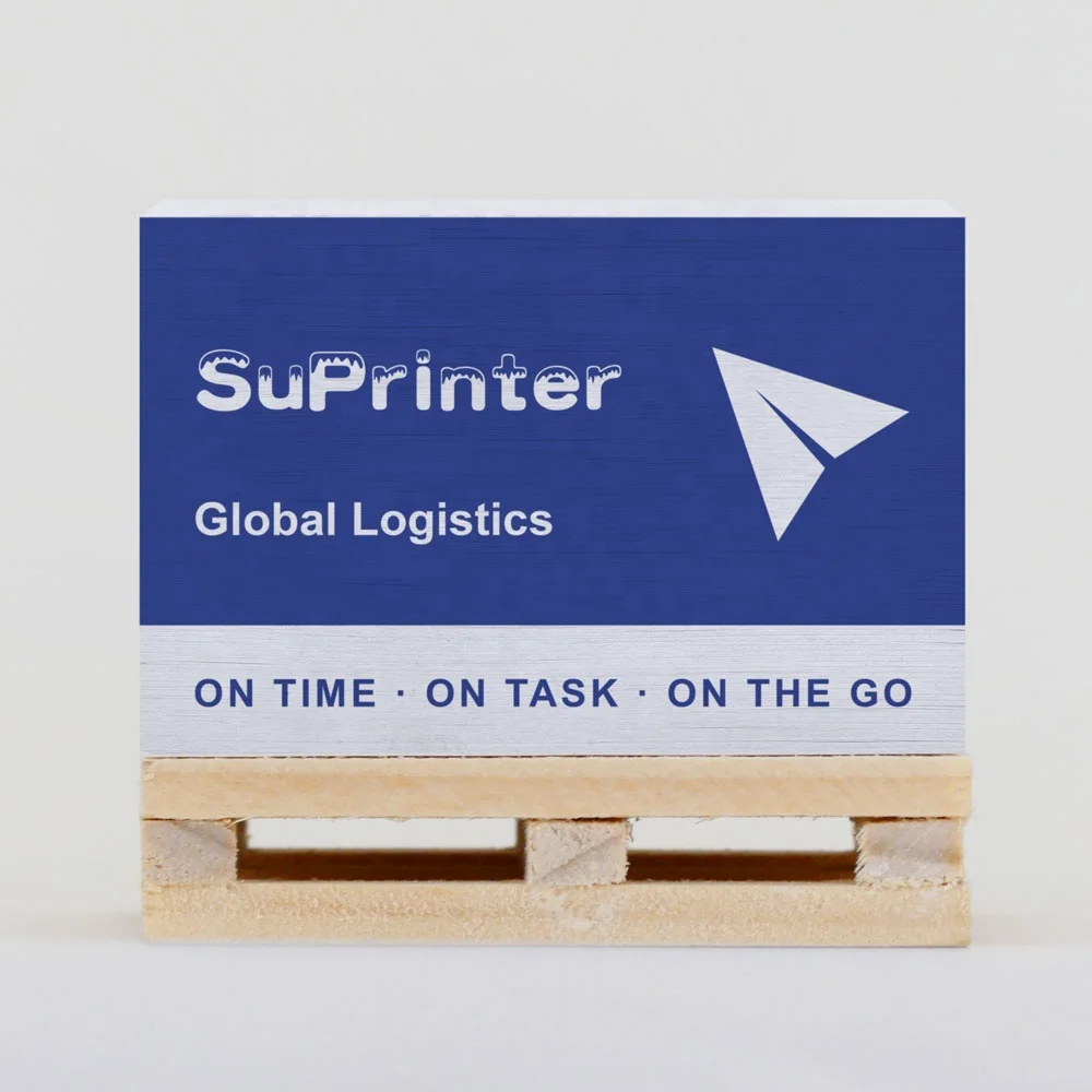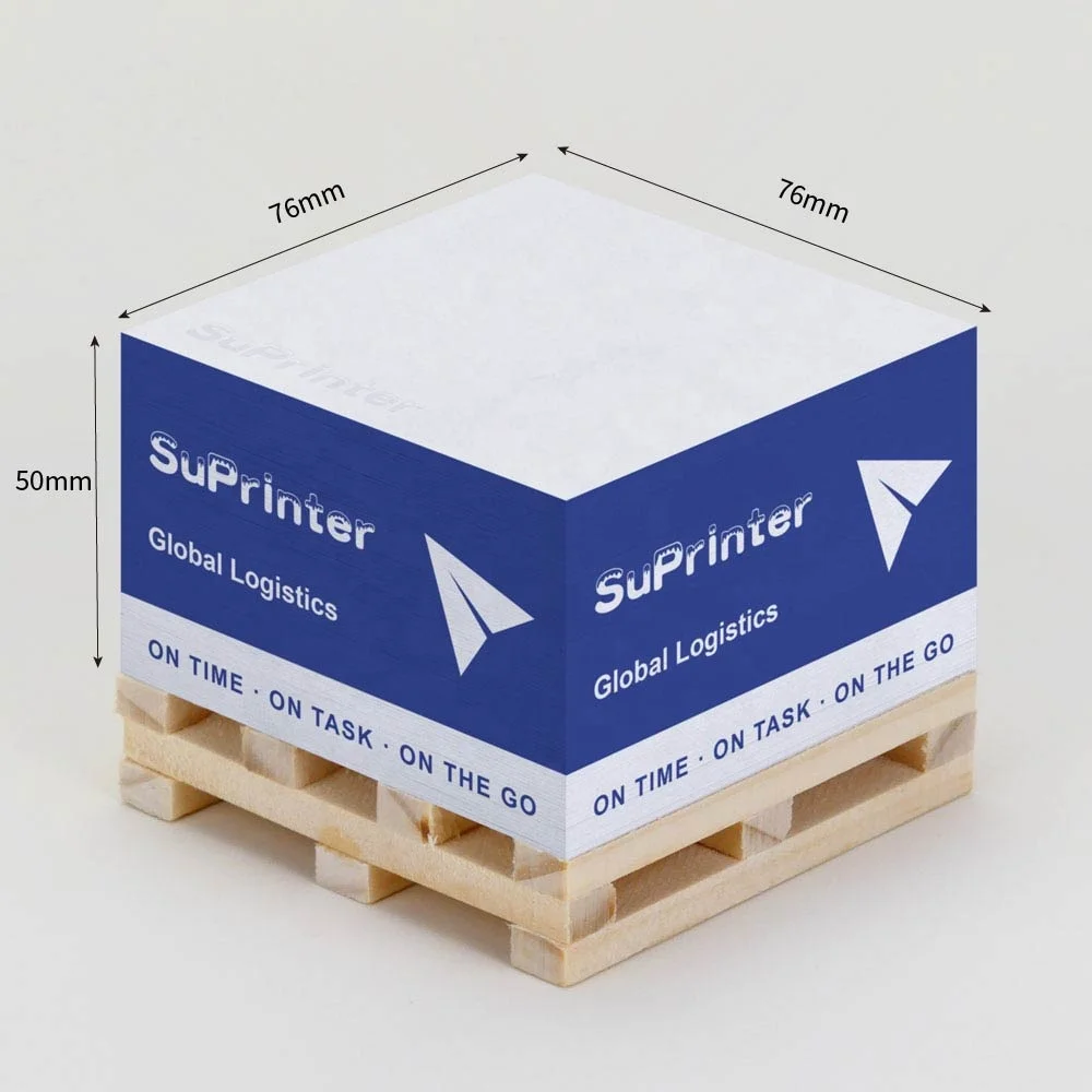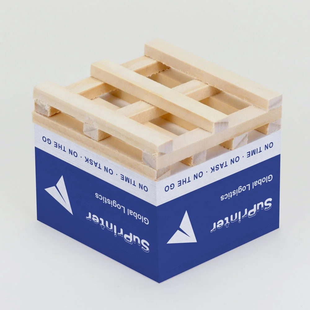 Custom 4 Sides Logo Printing Paper Block 7.6*7.6 Sticky Note with Wooden Pallet Custom Pallet Note Paper Block Memo Cube Pad
