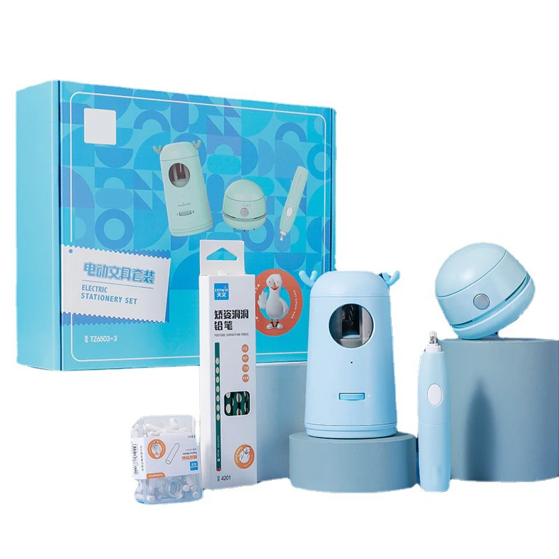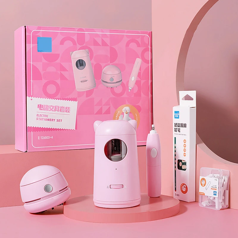 Electric Stationery Set Custom Logo Children Accompanying Gift ThreePiece Set Automatic Pencil Sharpener Eraser Vacuum Cleaner