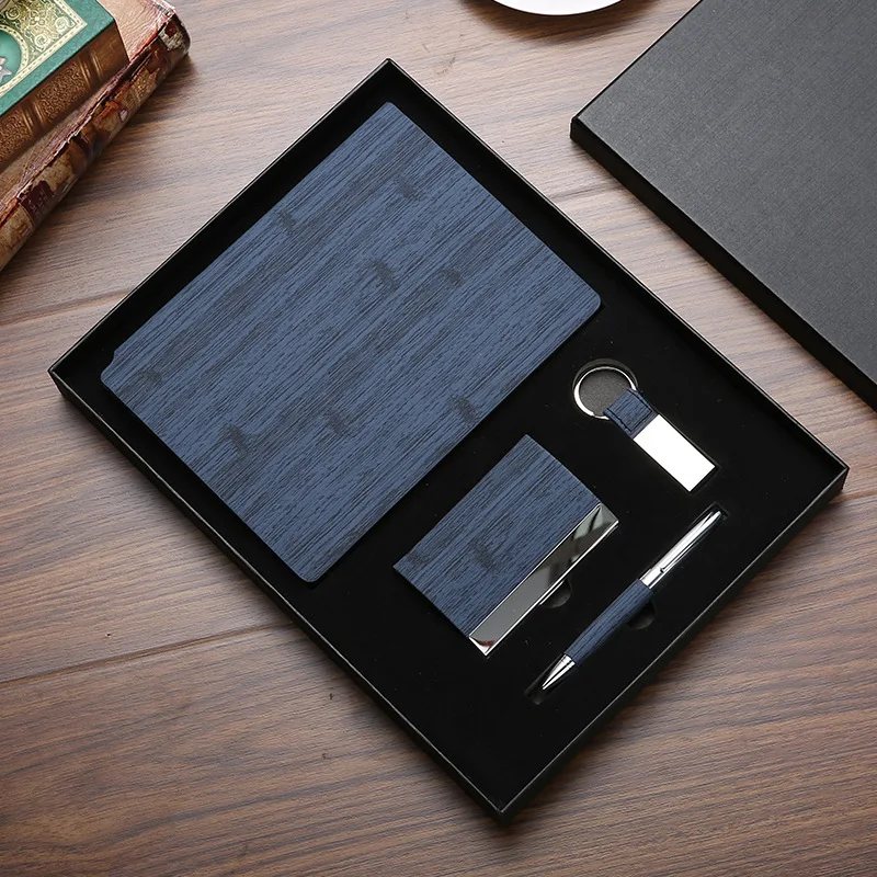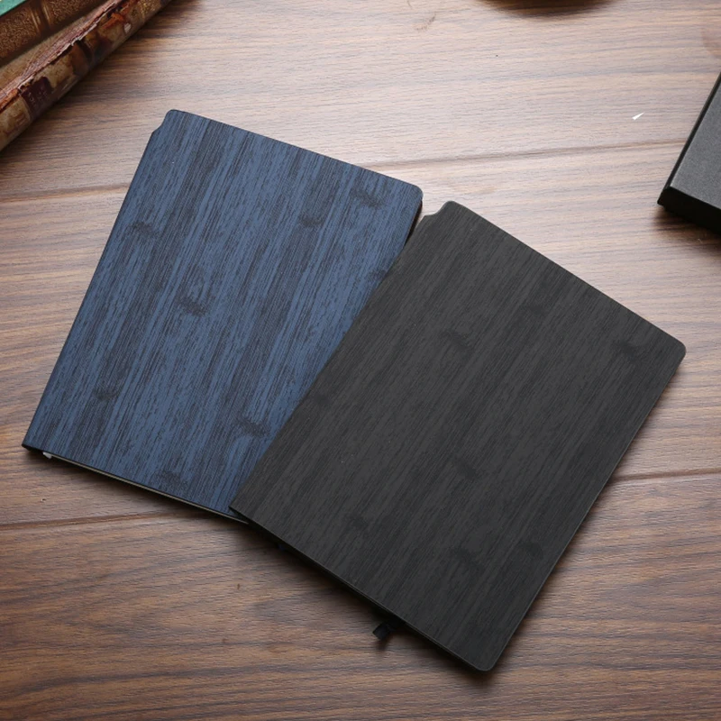Imitation Bamboo Leather Cover Notebooks Customized Logo Gift Set Planner Pen