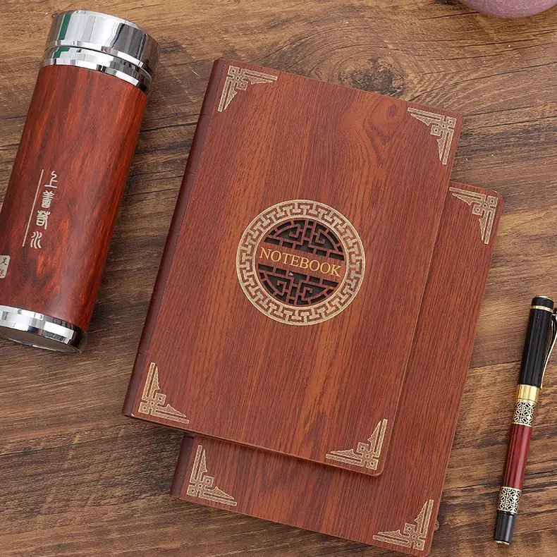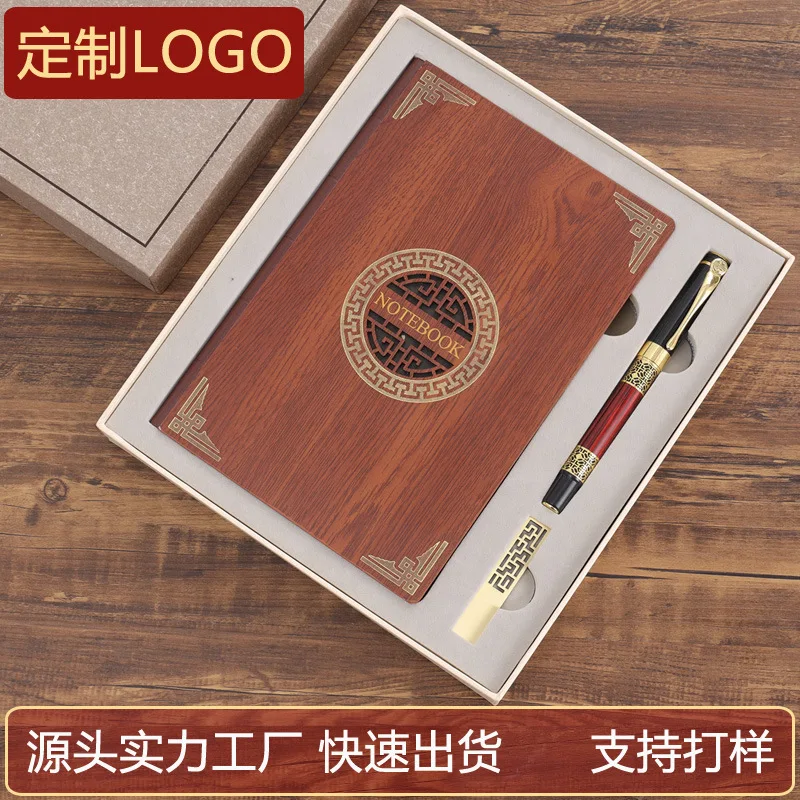Bamboo Wood Cover Notebooks Customized Logo Gift Set Planner Pen