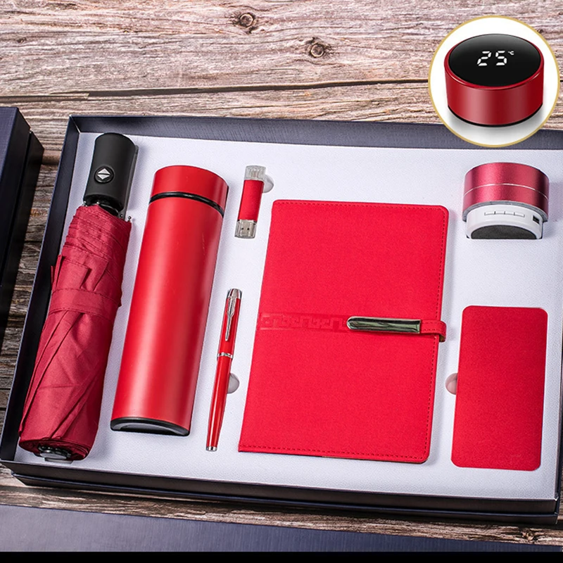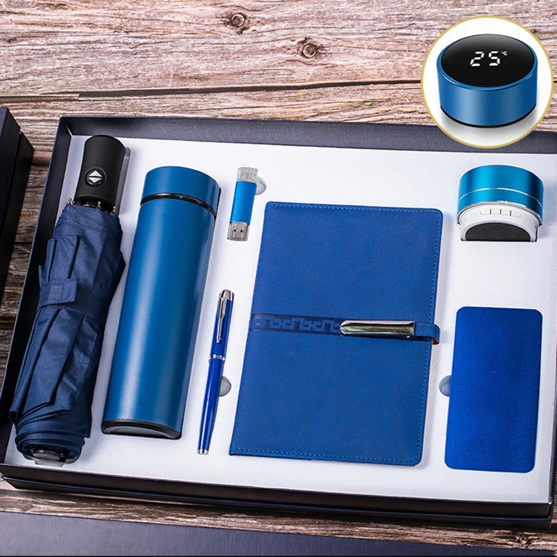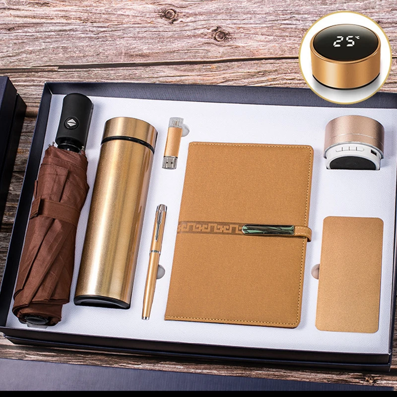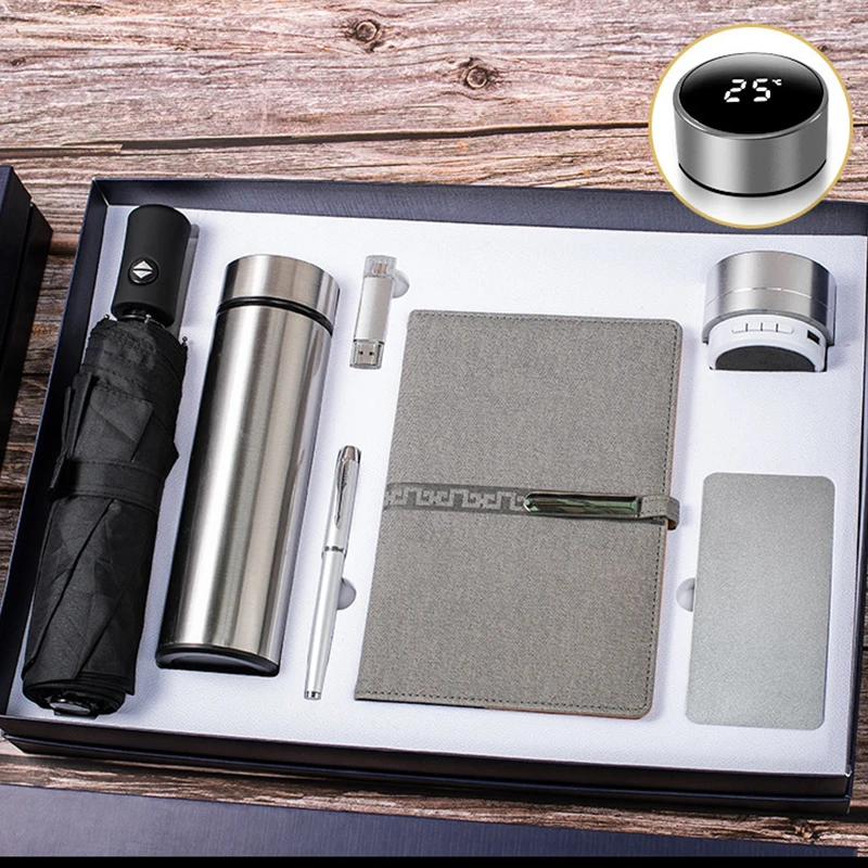Luxury 7 in 1 Set Business Gift U Disk Thermos Water Speaker Customer Premium Corporate Gift Set with Powerbank
