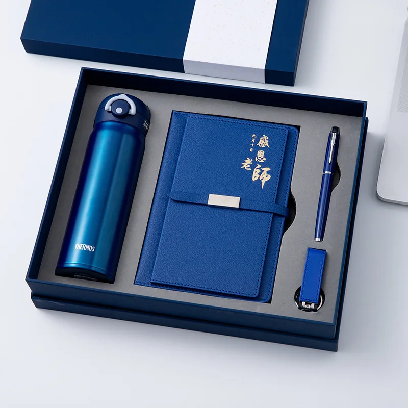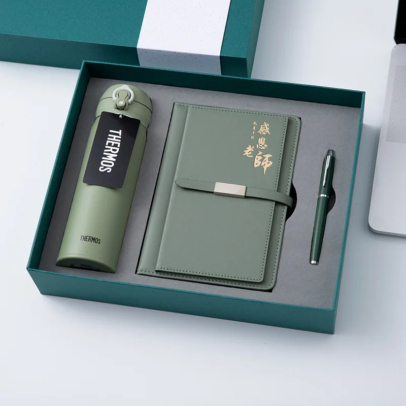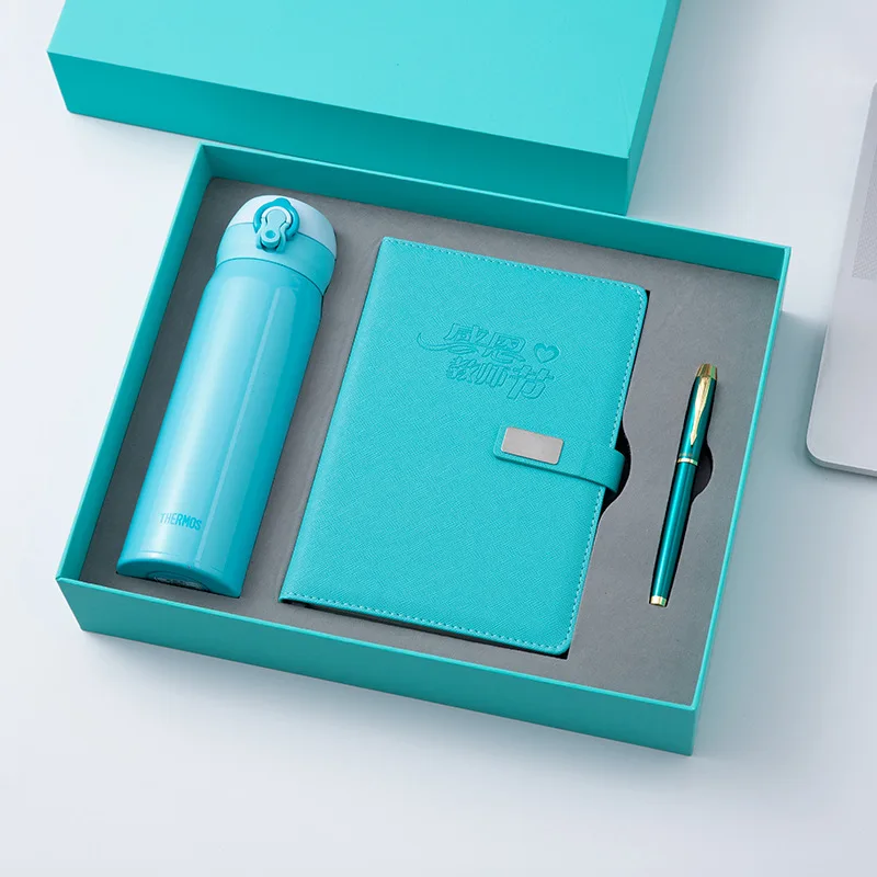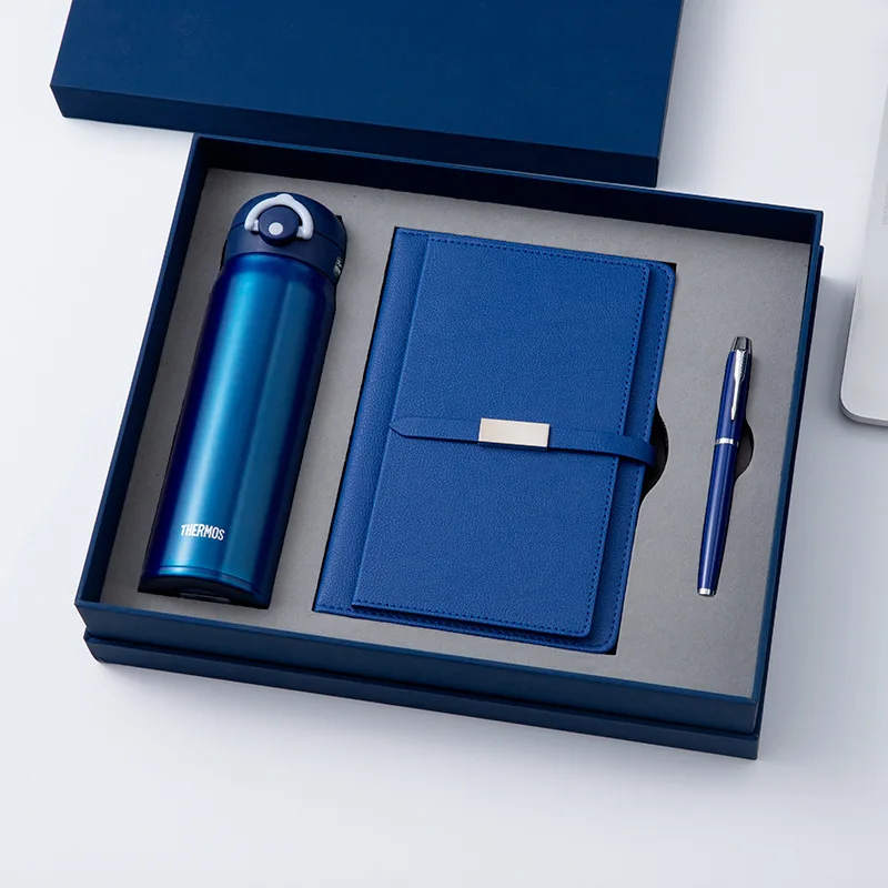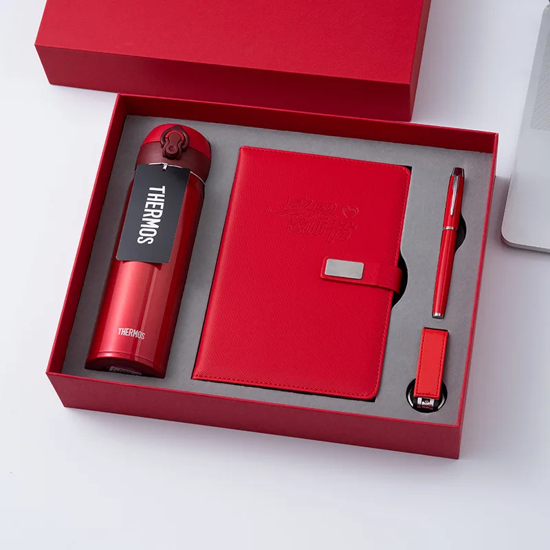 Wholesale Custom Logo Business Souvenir Insulated Water Bottle Flash Drive Pu Leather Notebook With Pen Stationery Set