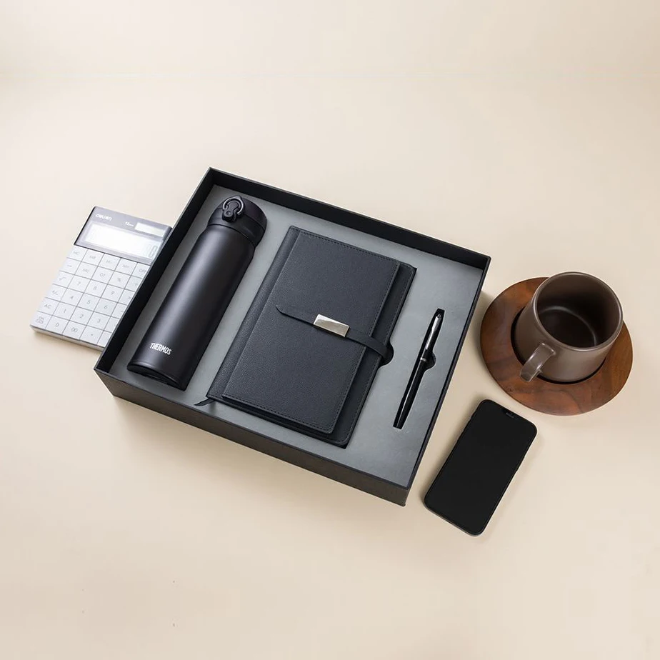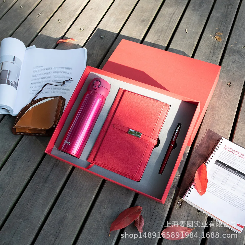 Wholesale Custom Logo Business Souvenir Visit Customers Give Gifts Water Bottle Pu Leather Notebook With Pen Stationery Set
