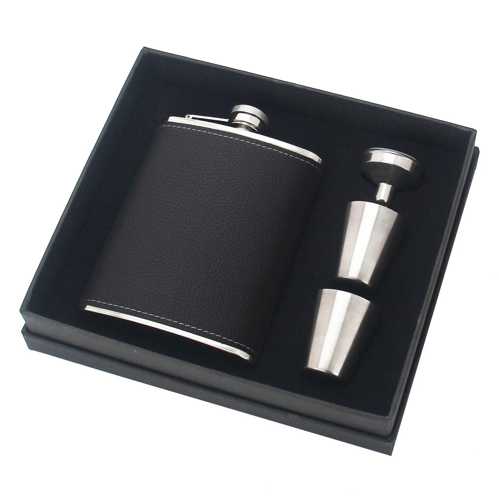 Gift Set Stainless Steel Hip Flask Thickened Leather Whiskey Flask Set with Shot Glass and Funnel