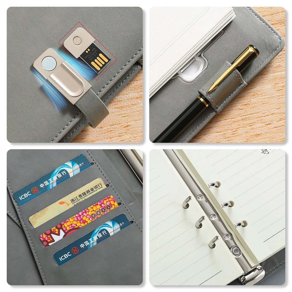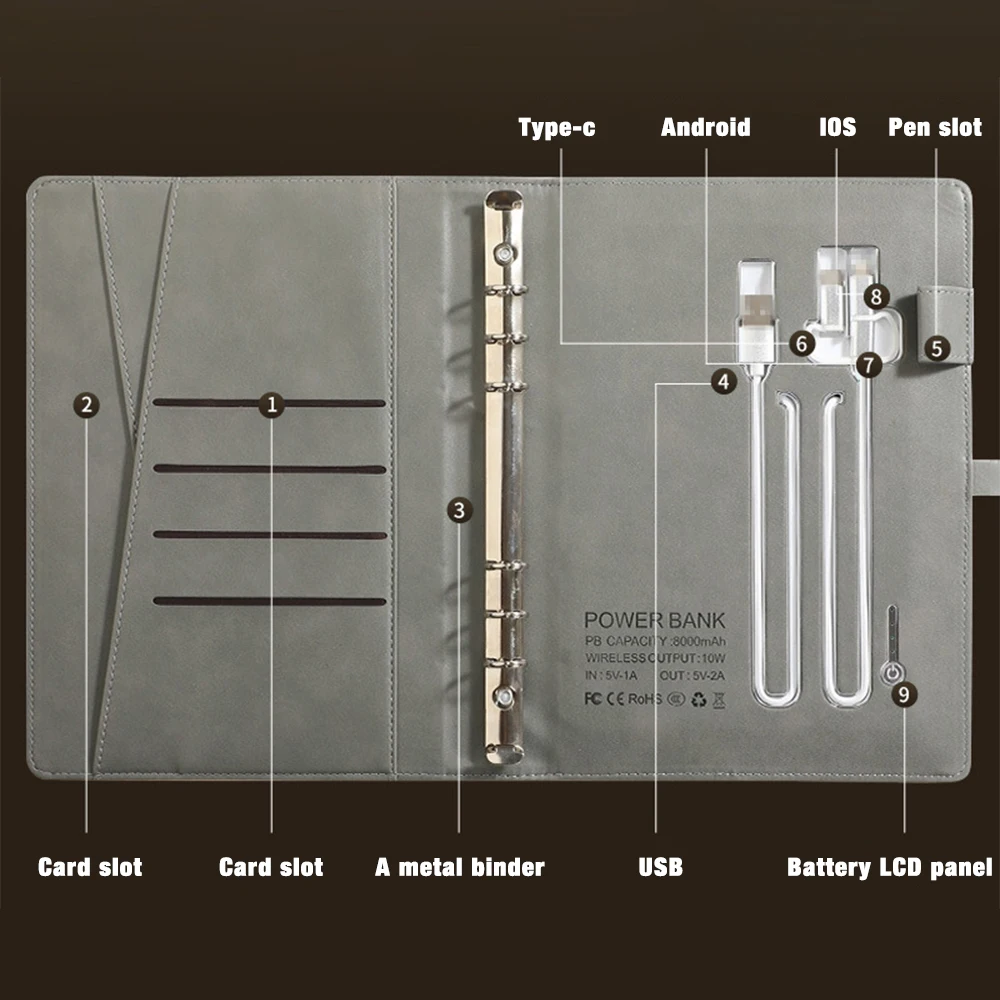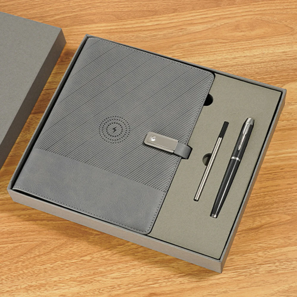 Customized Logo Multi Functional A5 Wireless Charging Smart Notepad PU Leather Journal Notebook Set with USB