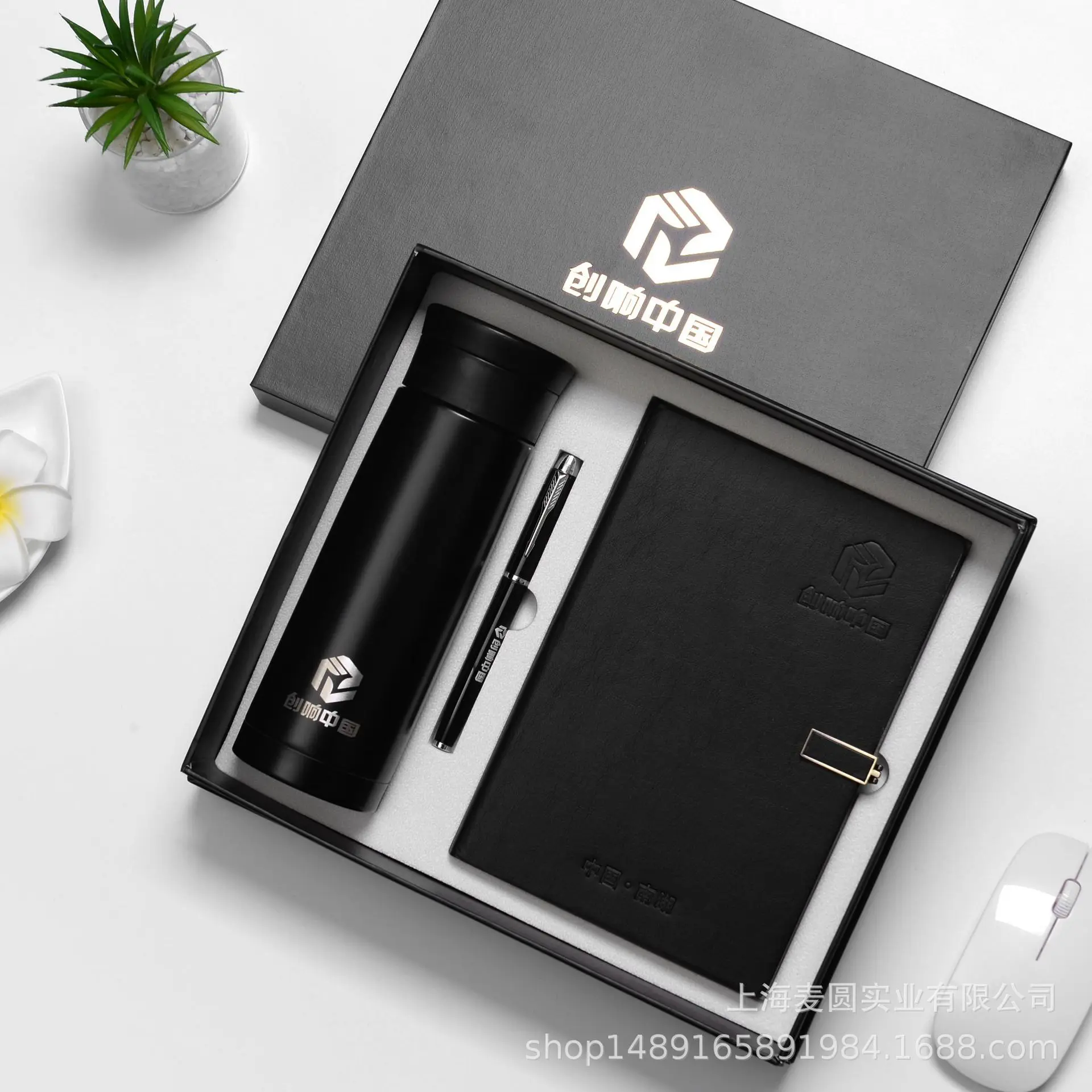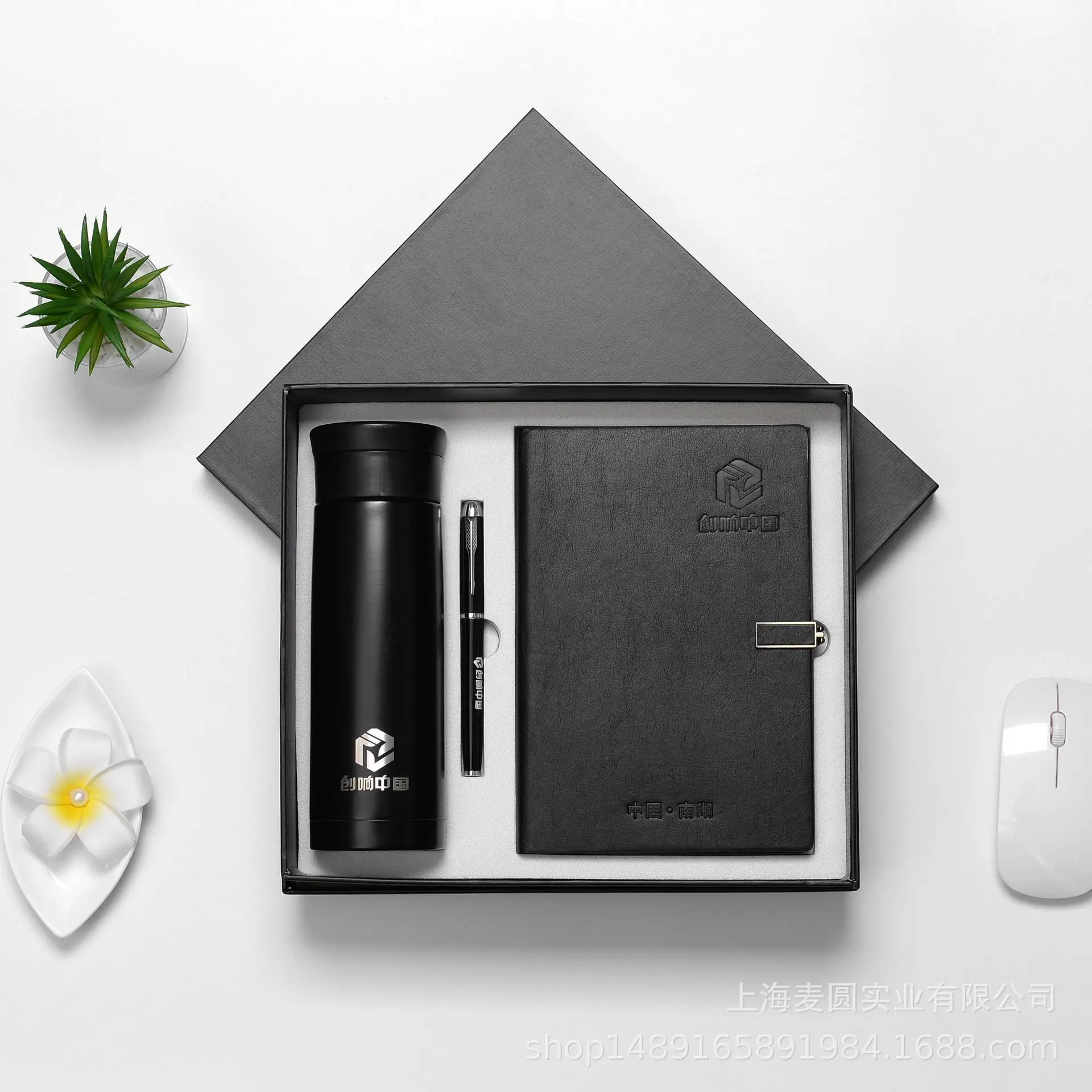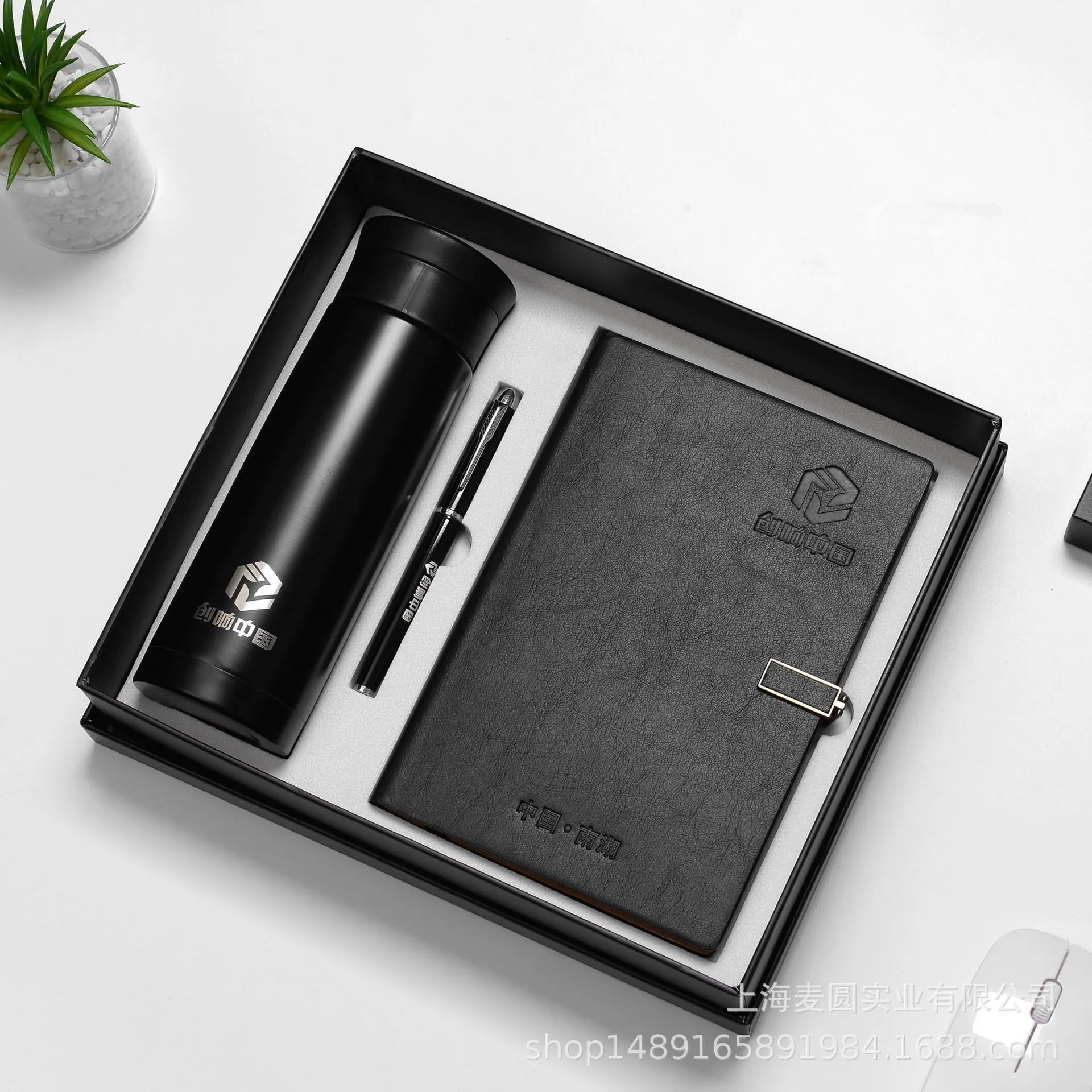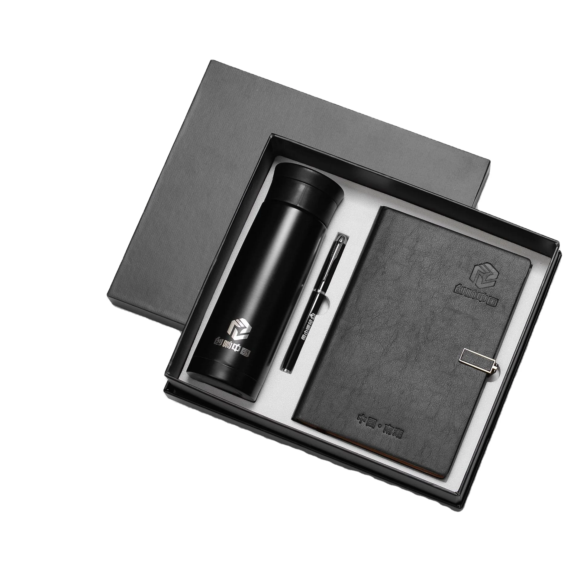 Wholesale Custom Logo Journal Business Conference Set PU Leather Notebook with Insulated Water Bottle and Pen for Gift Use