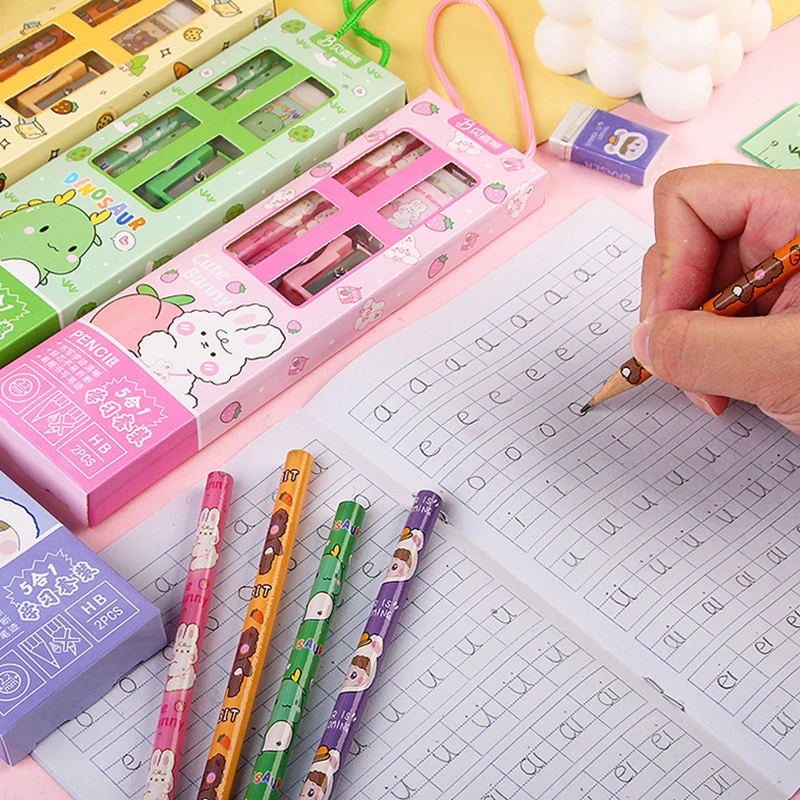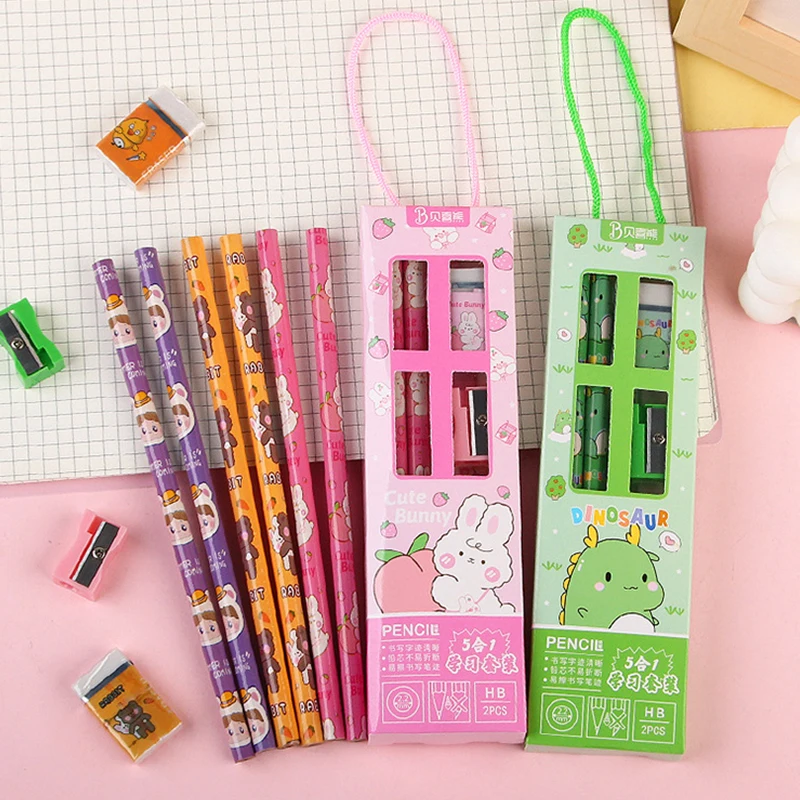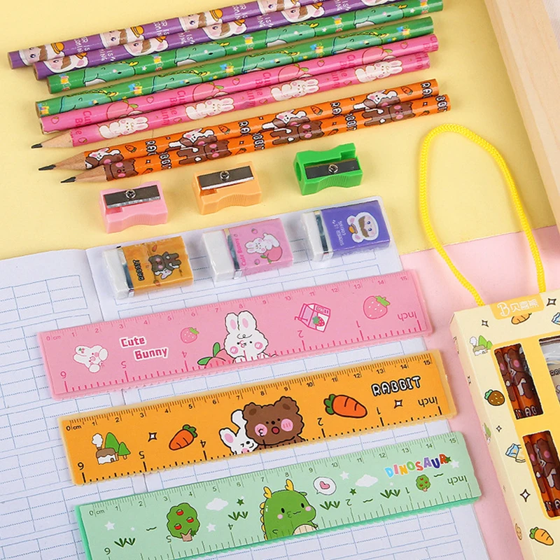 Five-Piece Stationery Set for Students Plastic Office Drawing and School Rulers Colored Gift Box Pack