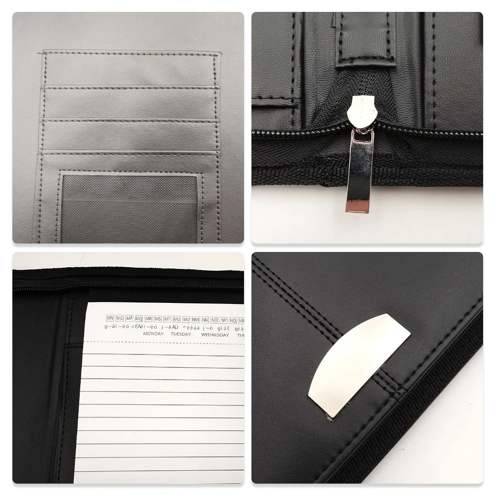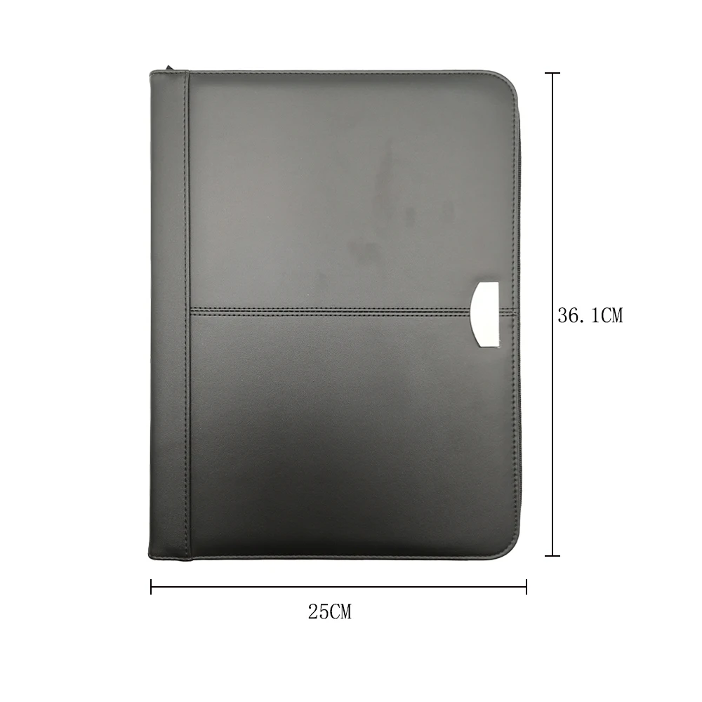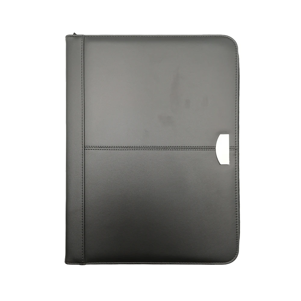 Luxury A4 Leather Travel Portfolio Binder Custom Logo Zipper Closure Case Pattern PU Material Paper File Folders Document