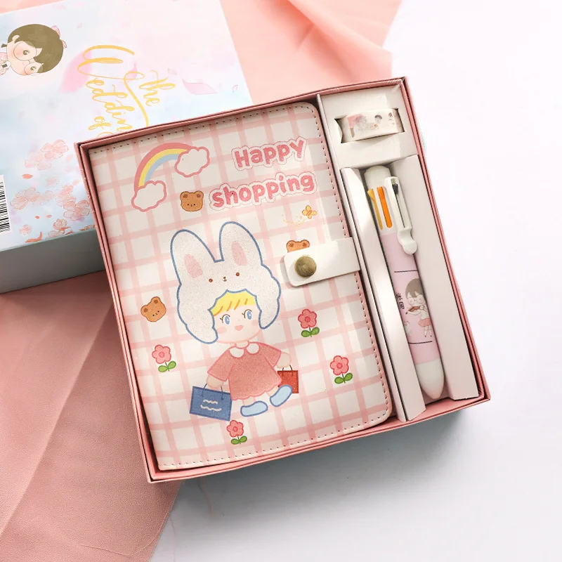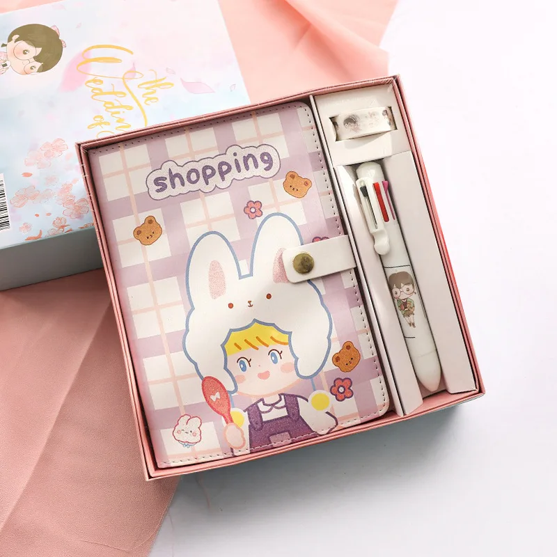 Wholesale Customizable Logo A5 Notebook Pen Office Stationery Set Cute Cartoon Planners Journal for Children's PVC Fabric