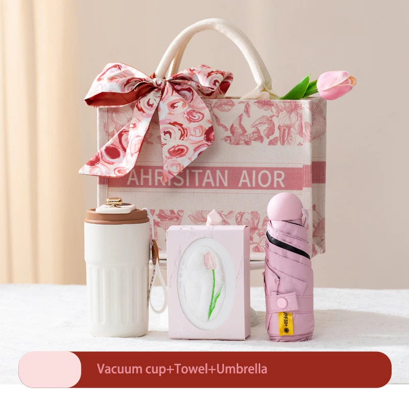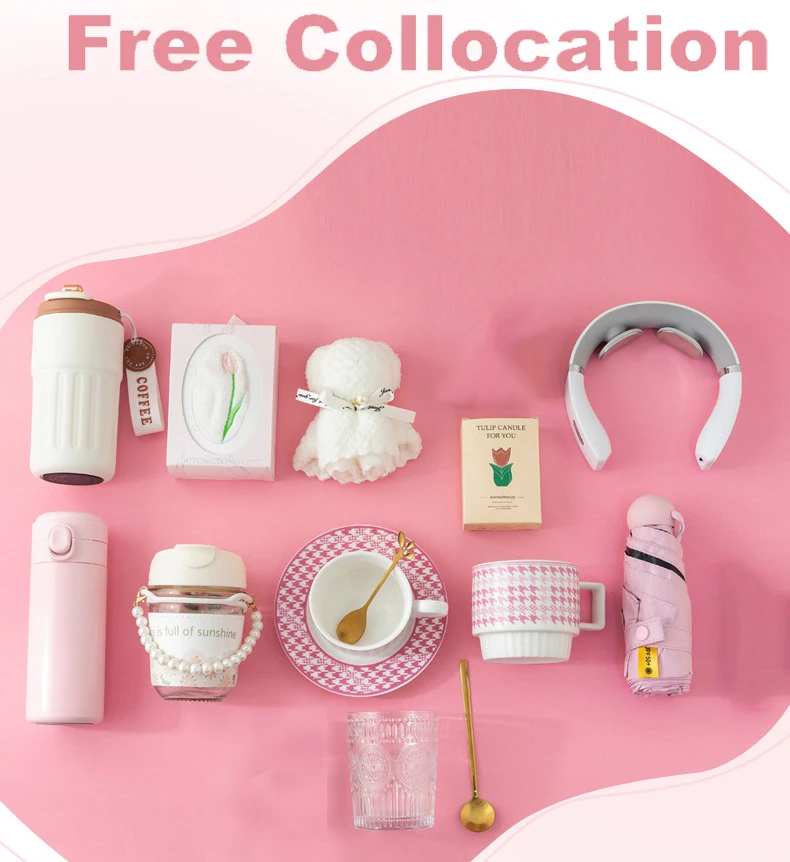 Women's Custom Logo Wedding Promotion Gift Set Including Neck Massager Thermos Cup Towel with UV Printing