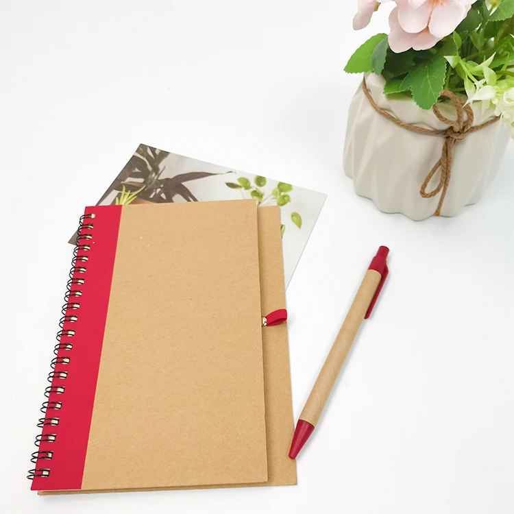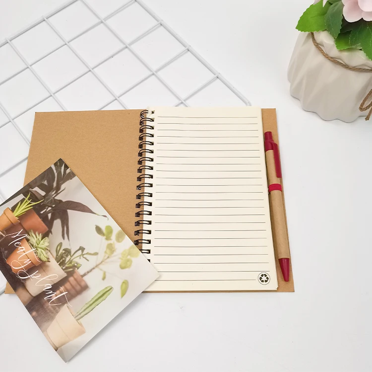 Wholesale Custom Made A5/A6 Spiral Notebook Set Environmentally Friendly Degradable Material Paper Cover Pen Stationary Cheap