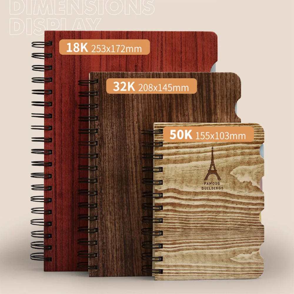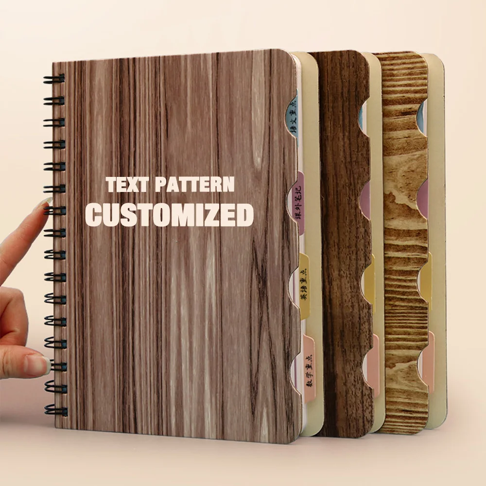 Wholesale Customized Retro Style Spiral Notebook Wood Grain Design Business Planner Paper for Meeting Promotional