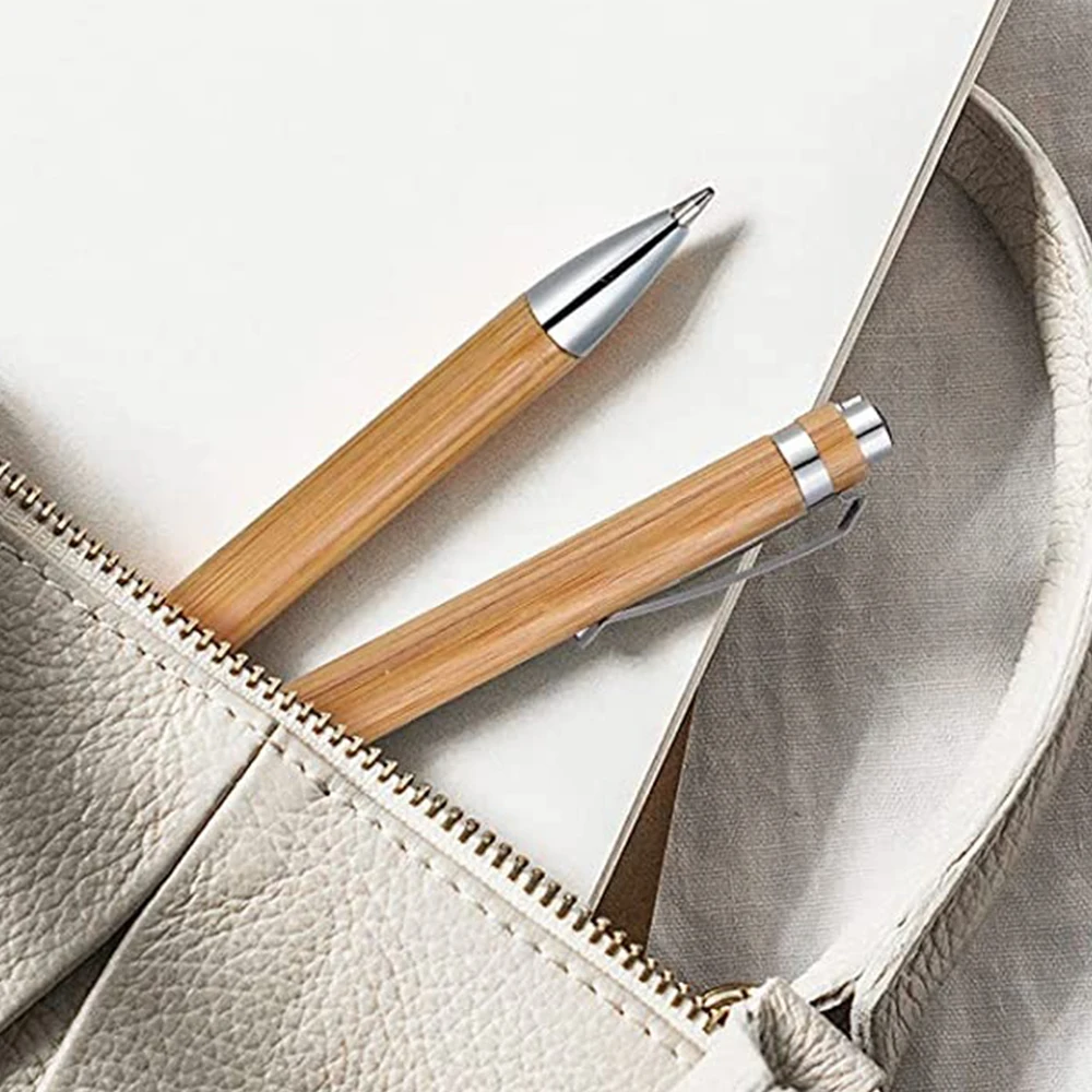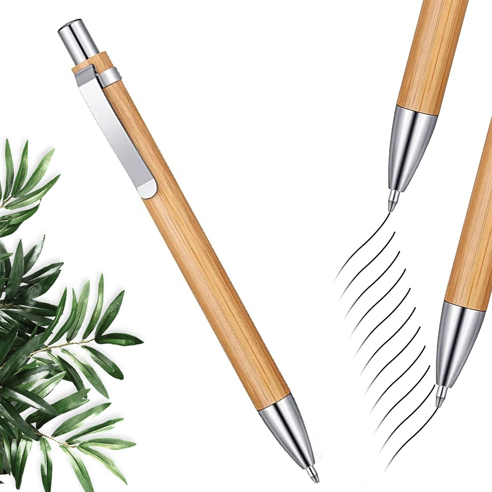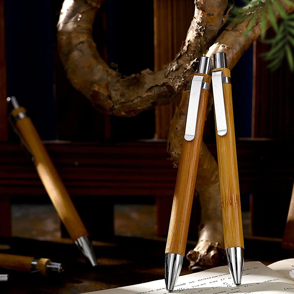 Sustainable Eco-friendly Wooden Ballpoint Pens Set Bamboo Covered Pens Holder with Personalized Logo Gift for Ball Sign