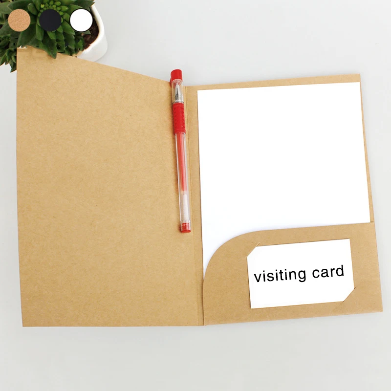 Kraft Paper A5 Single Pocket File Folder Set with LOGO Printing Leather Binder for School Use Folded in Half
