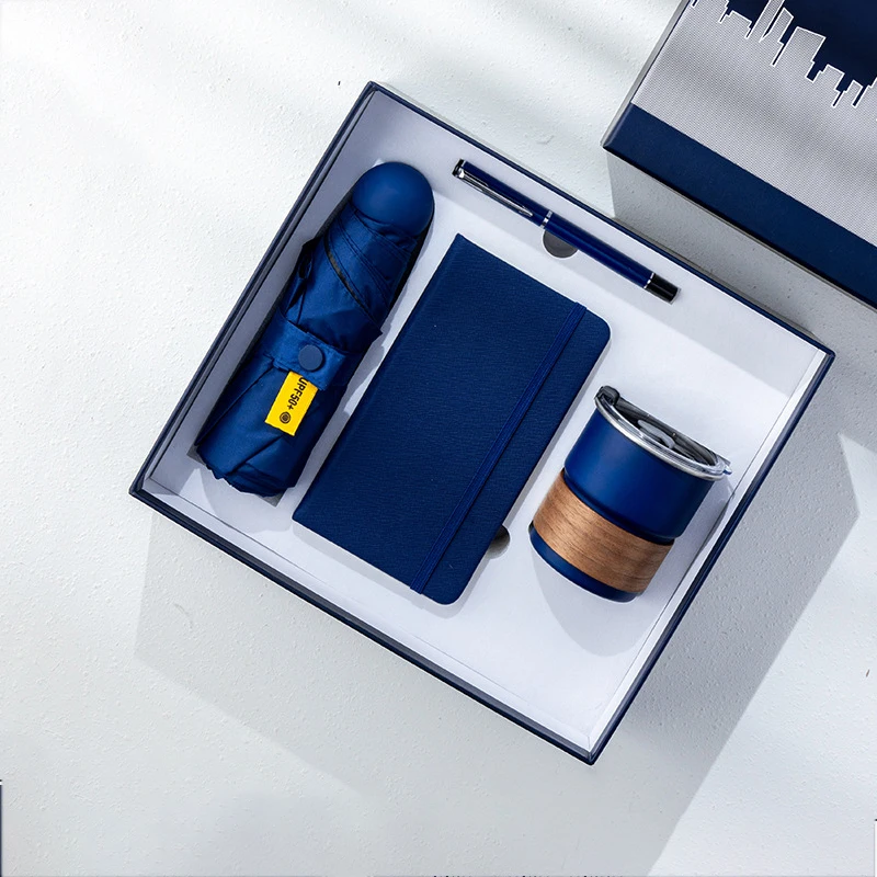 Custom Luxury Promotional Umbrella Business Corporate Journal Notebook with Pen Gift Set Coffee Cup with Logo