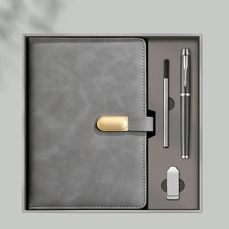 Custom Luxury Promotion A5 Notebook Set Hardcover PU Business Journal with Pen Gift Box