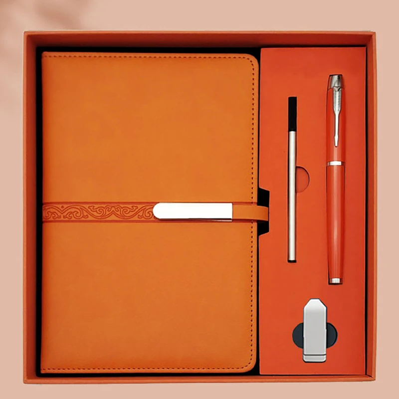 Wholesale A5 Premium Business Notebook Custom Logo Fabric Cover Leather Journal Gift Set