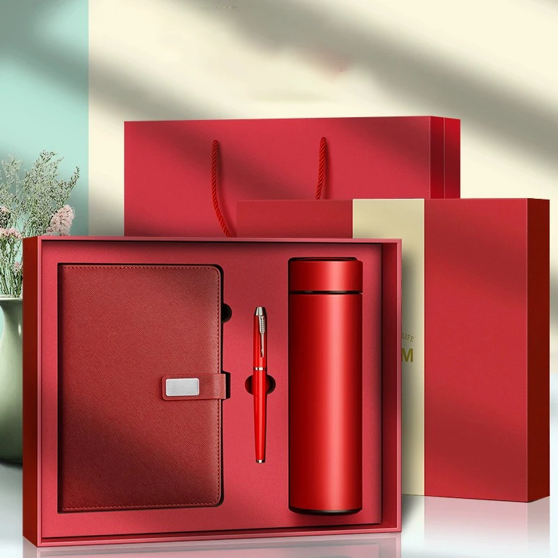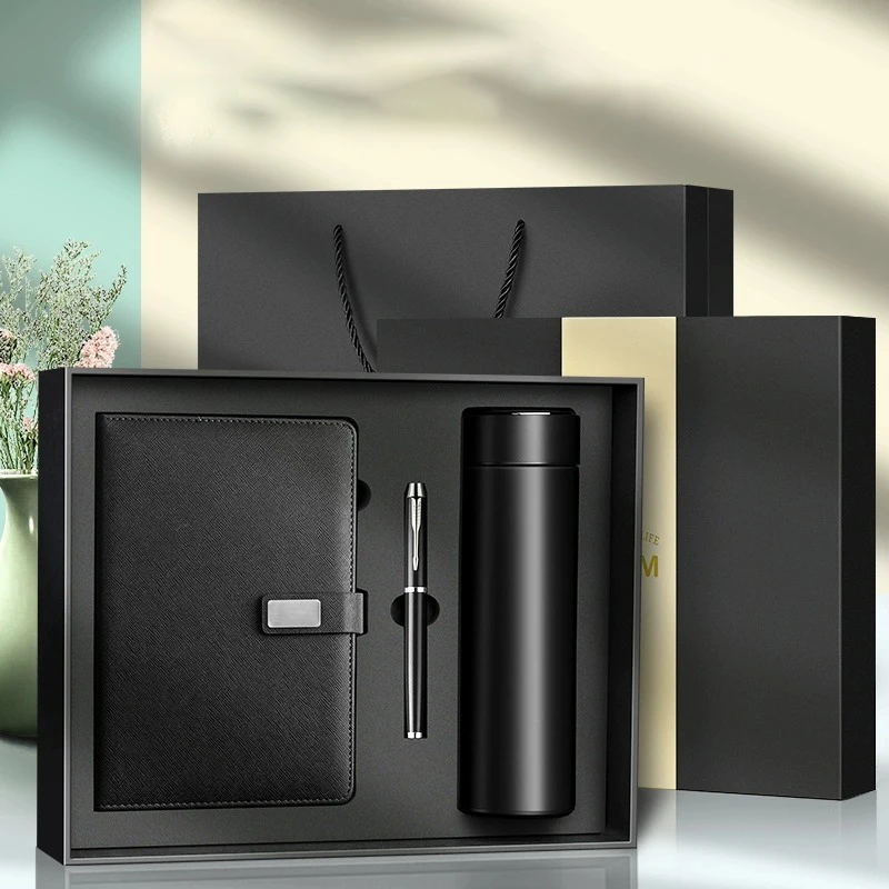 Luxury Corporate Promotional Gift Sets Custom Logo Leather Notebook Journal with LED Thermos and Pen Presented in a Box