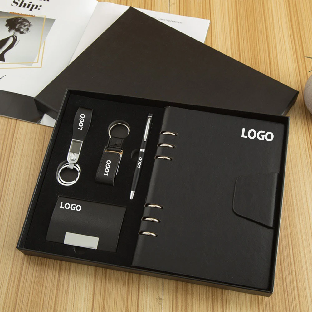Customizable Luxury PU Leather Notebook Gift Set with Pen Official Business Cooperation for Weddings Promotions Welcome Gifts