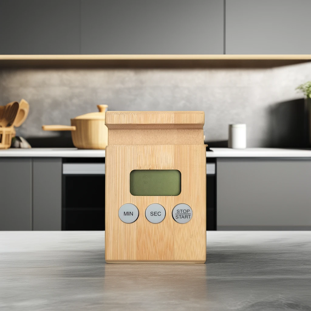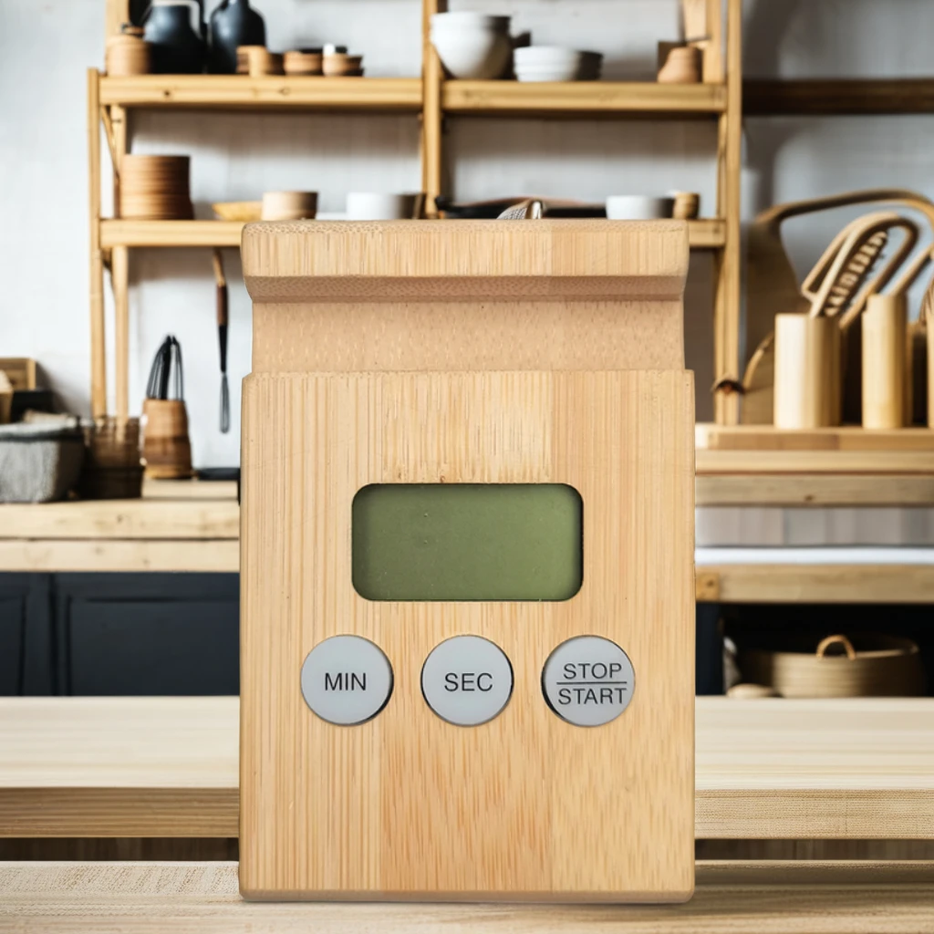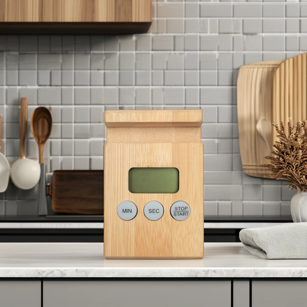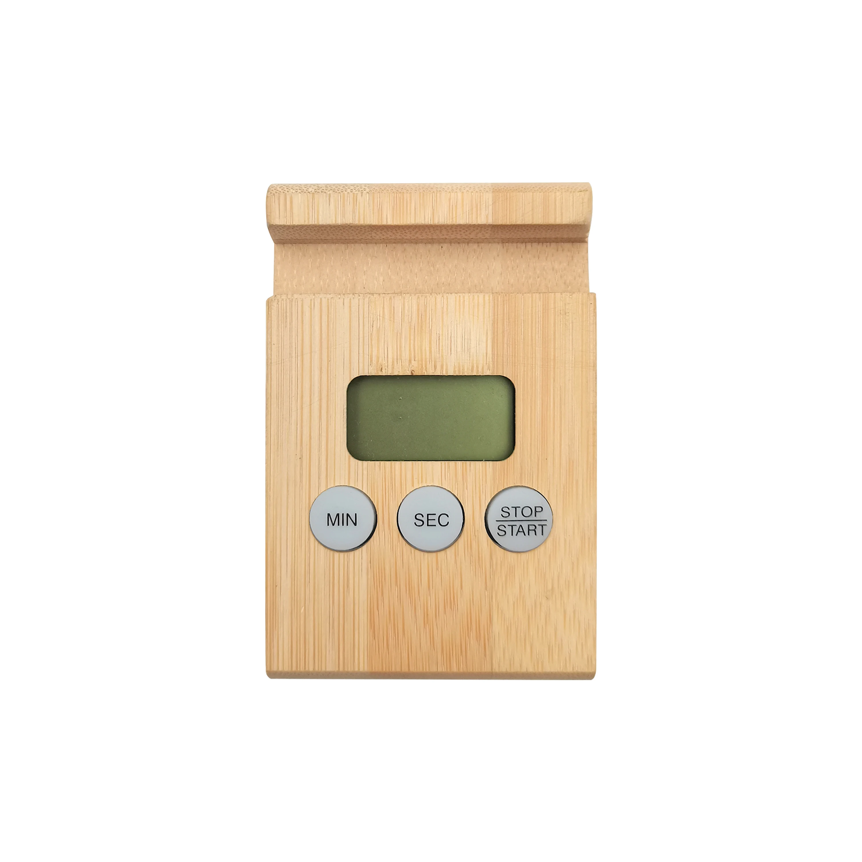 Custom Bamboo Kitchen Timer LCD Digital Touch Screen Cooking Tool with Mobile phone holder