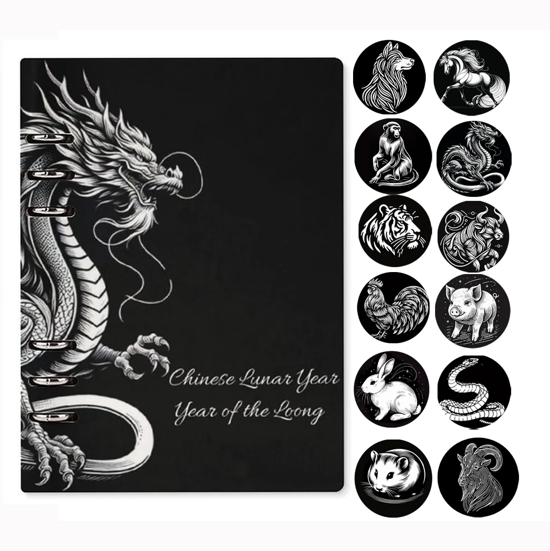 Customizable A5 Pu Leather Journal Notebook Planner Featuring Chinese Lunar 12 Zodiac Signs 60 Loose-leaf Inner Pages with Logo