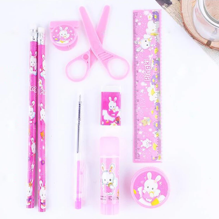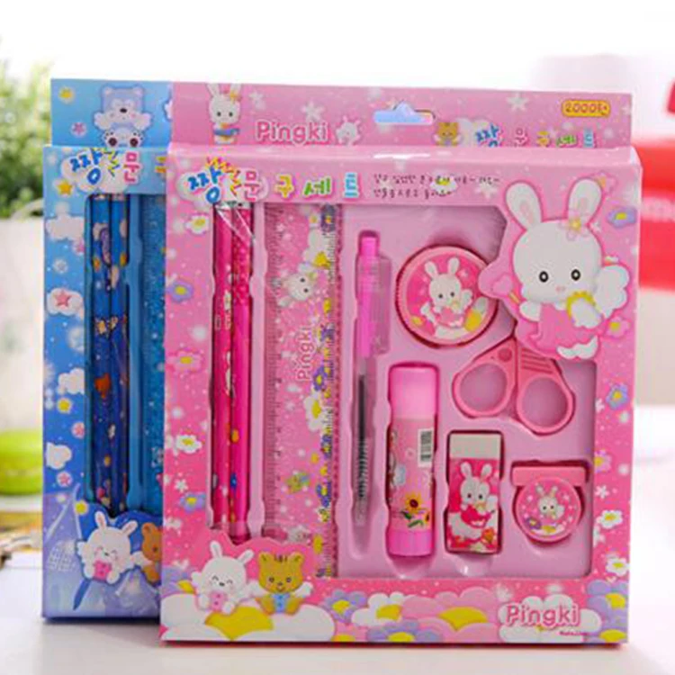 Eight-Piece Kawaii Cute Ningbo Manufactured Stationery Set Includes Pens Pencils for School Use for Birthday Gift