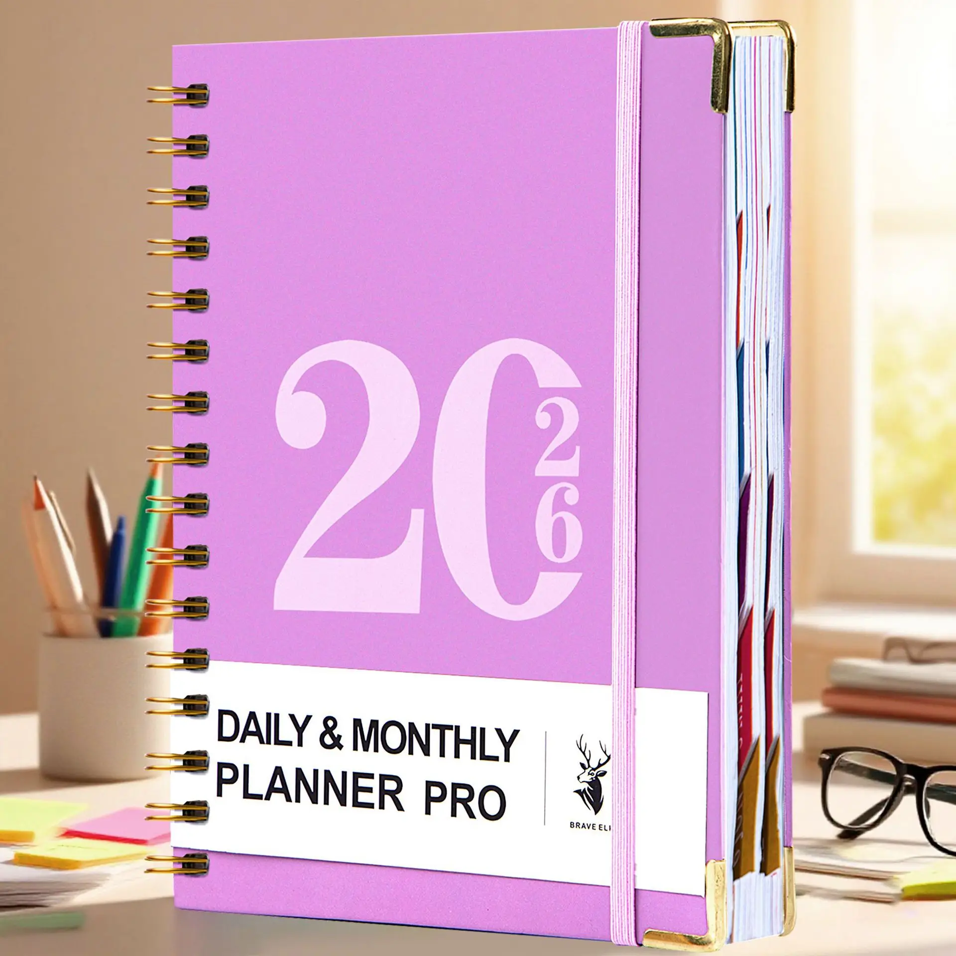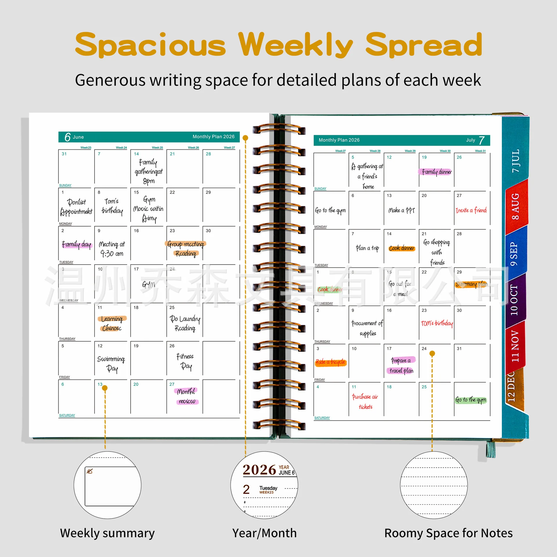 Factory Customized New 2026 All Year Deluxe Edition PU Leather A5 Fabric Daily/Monthly/Annual Calendar Planner Notebook Logo