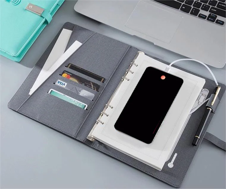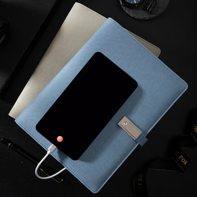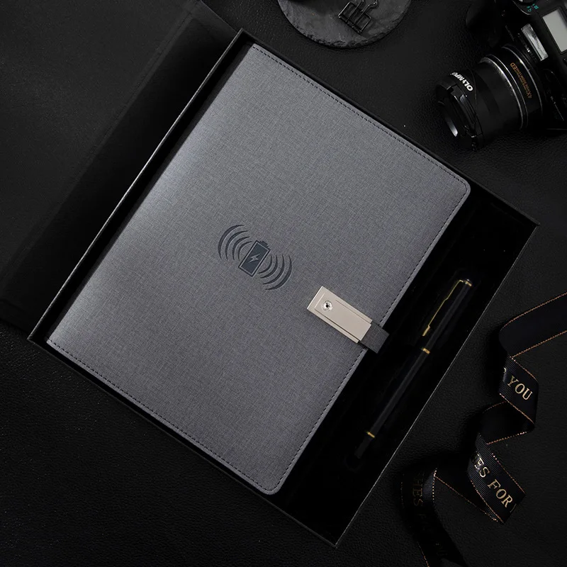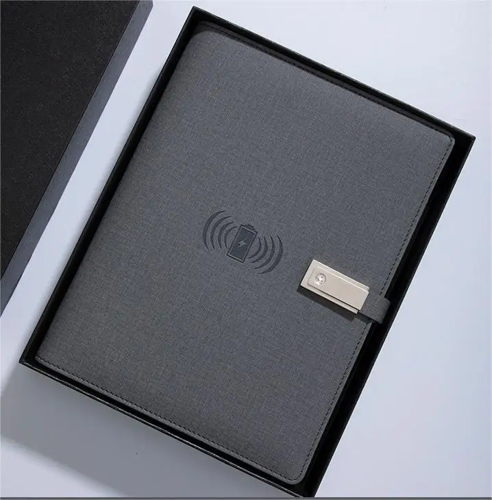 Leather Wireless Rechargeable Notebook Business Gifts Mobile Power Notepad With USB Flash Drive Set Printed Logo