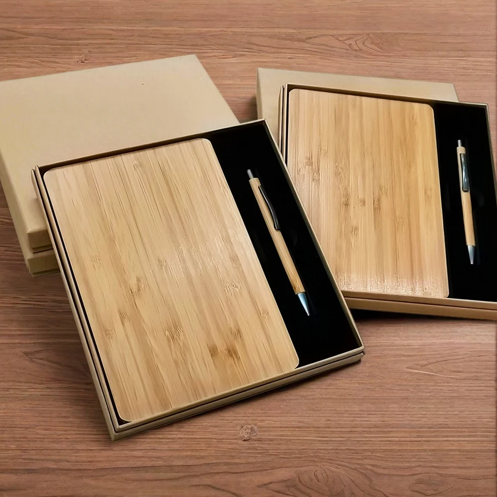 Wholesale Popular Custom A5 Notebook Set Personalized Bamboo Journal with Design Logo Eco-Friendly Promotional Gift Set