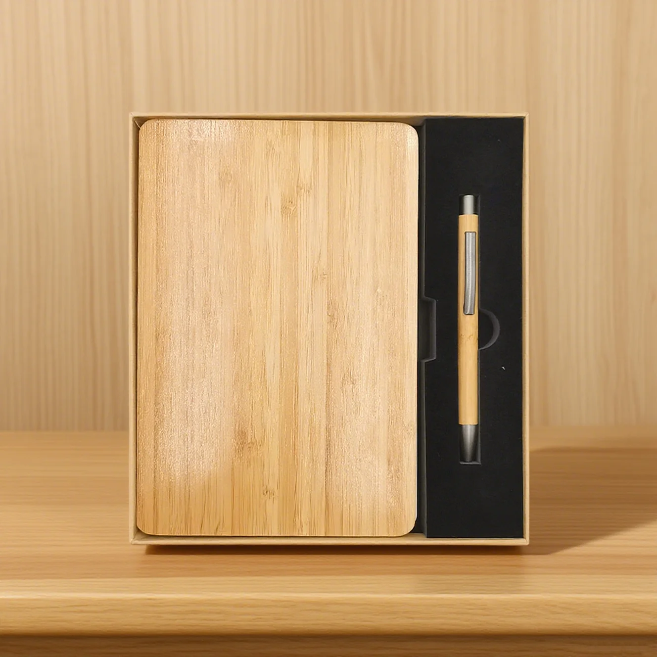 Custom Logo Design Fresh Clean Bamboo A5 Notebook Diary Journal Writing Set Eco-Friendly Business Gift Promotional Note Book