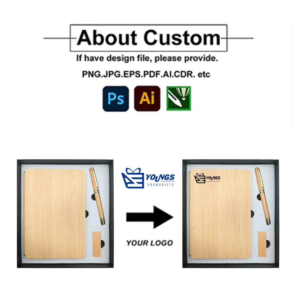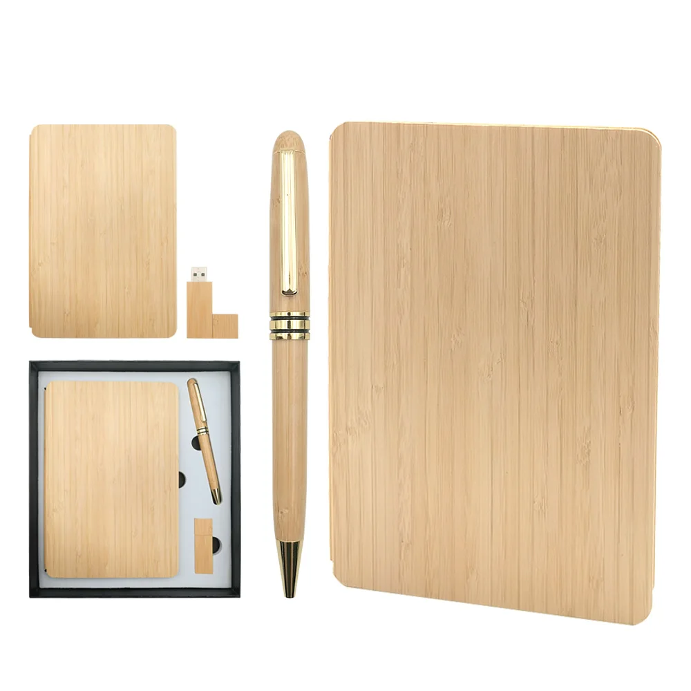 2026 Custom Promotional Luxury A5 Eco Friendly Journal Bamboo Business Notebook Gift Set With Pen Flash Drive