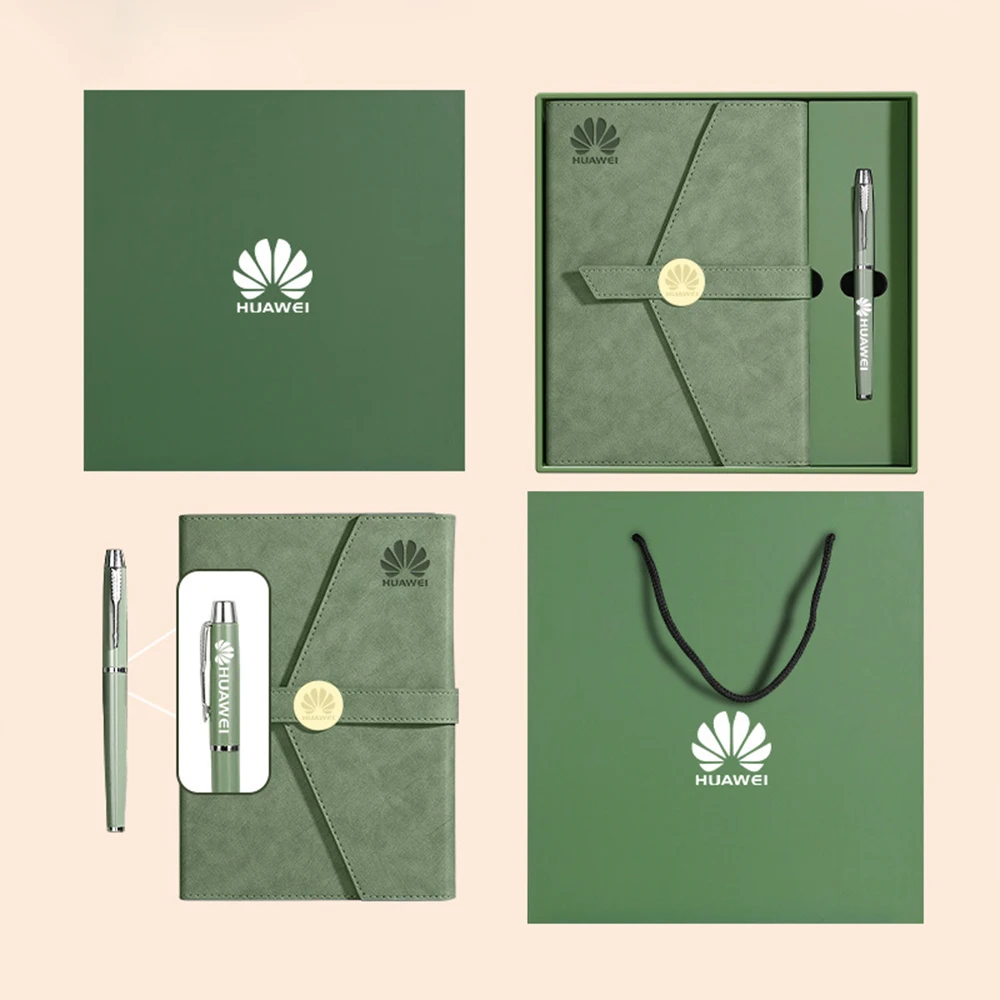 Custom Business A5 Journal Notebook PU Leather Corporate Gift Set with Thermal Binding Spiral Style Features a Magnetic Buckle