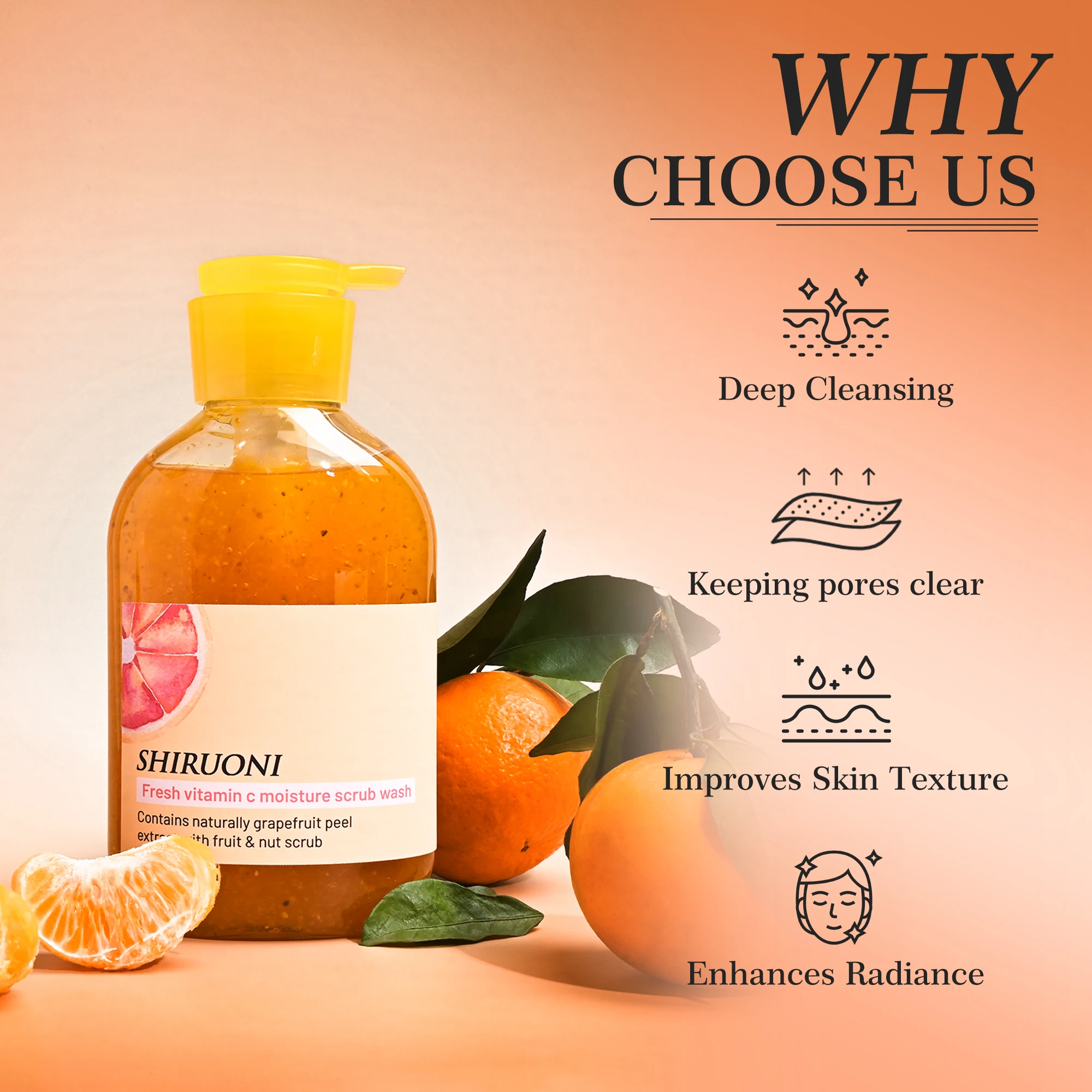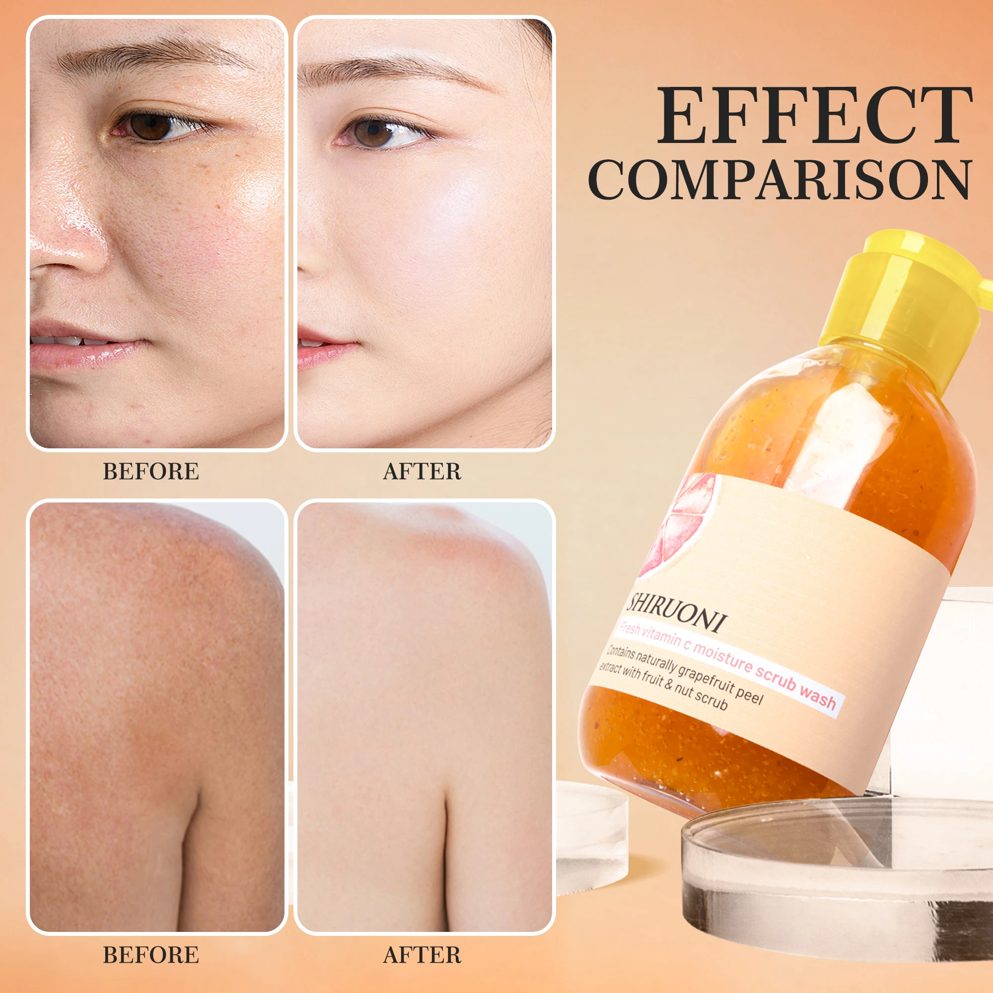 OEM ODM Vegan Grapefruit Citrus Vitamin C Facial Body Scrub Wash Citrus Grapefruit Exfoliator for Brightening Smoothing