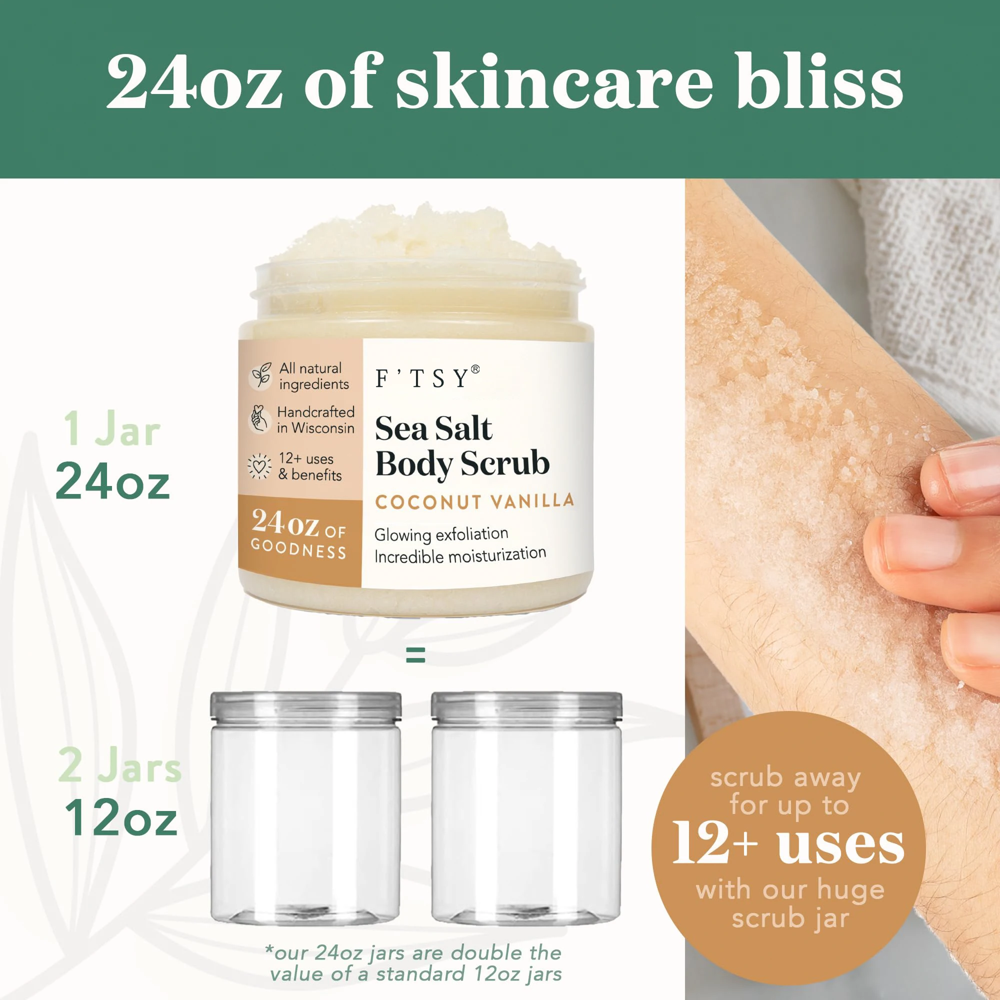 All Natural Sea Salt Exfoliator Pre- and Post-Shaving Daily Skin Peeling Moisturizers Smoothing Coconut Vanilla Body Scrub