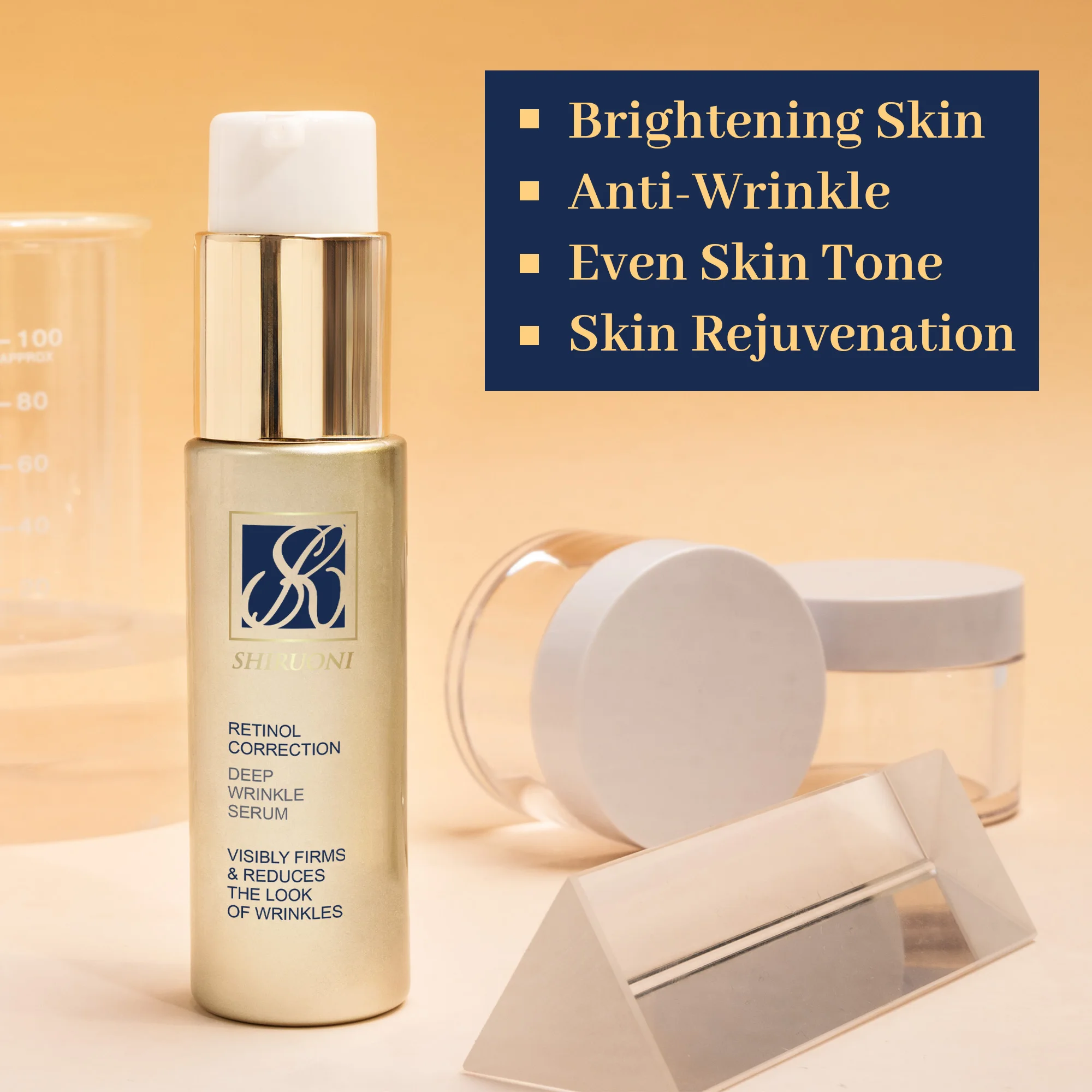 High Quality square Bottle Design with Gold Special Design Lid 20g 50g Jar 40ml 100ml 120ml Pump Bottle