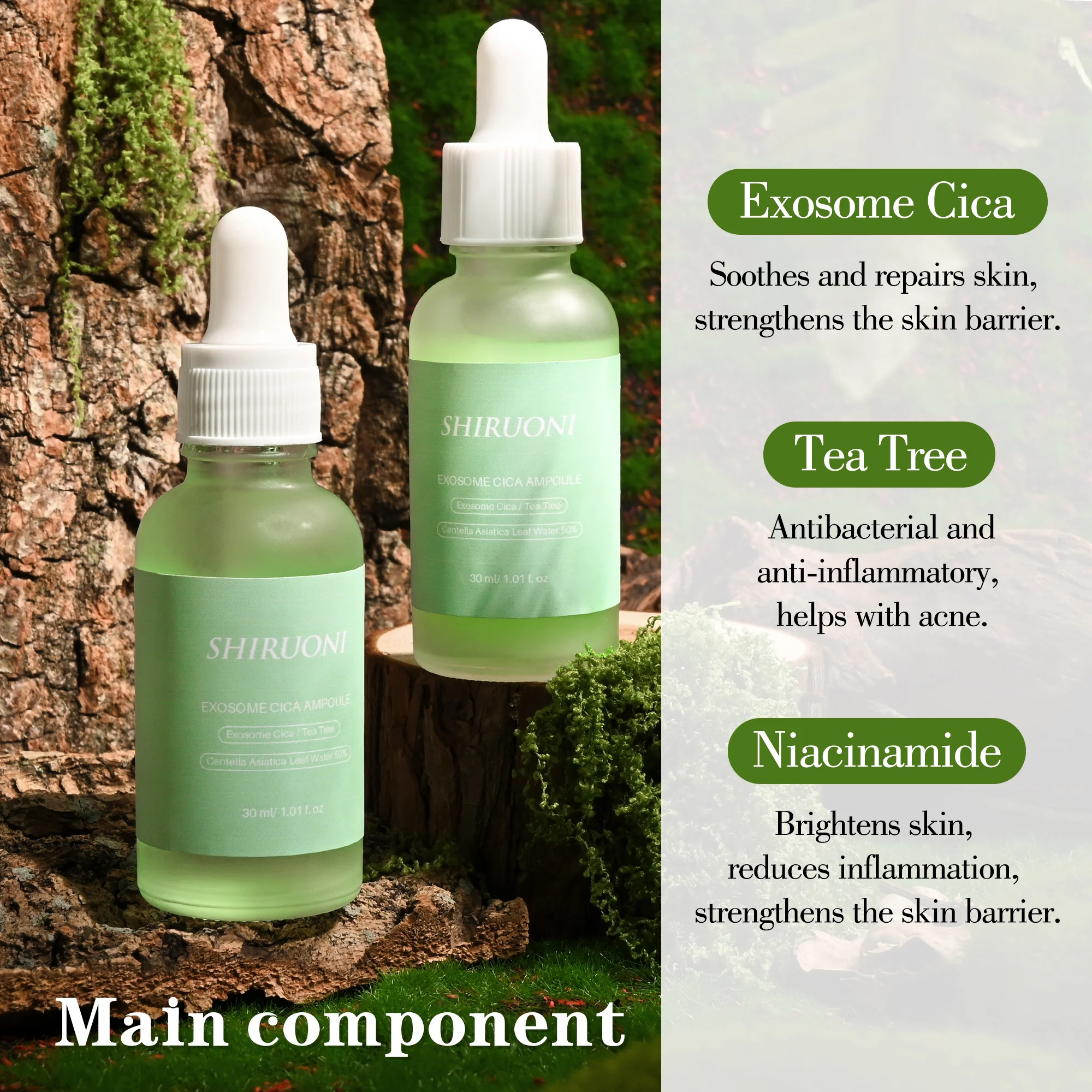 Organic Tea Tree Exosome Cica Whitening Face Serum Dry Oily Sensitive Anti-Wrinkle Lightening Pore Shrinking Aging ODM/OEM